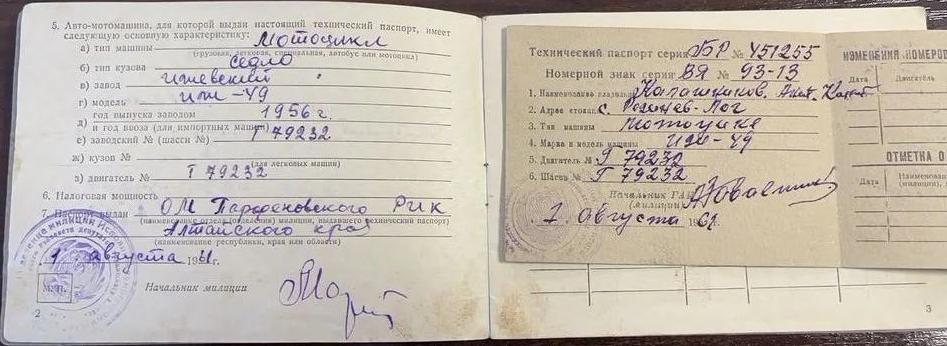 ВЯ 93-13 (техпаспорт 1 VIII 1961 на Иж-49 1956 года, 64кБ, номер, 75кБ).