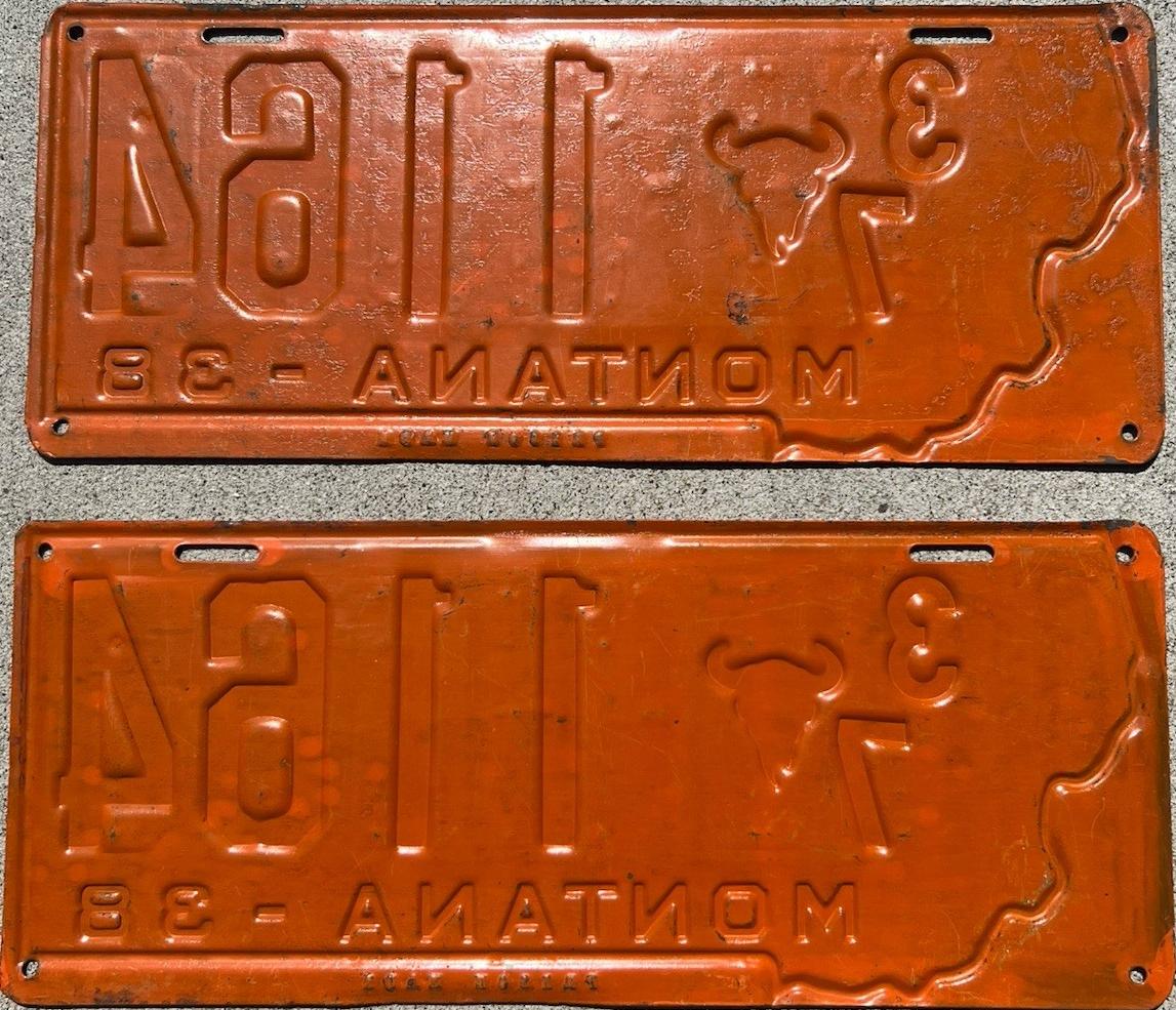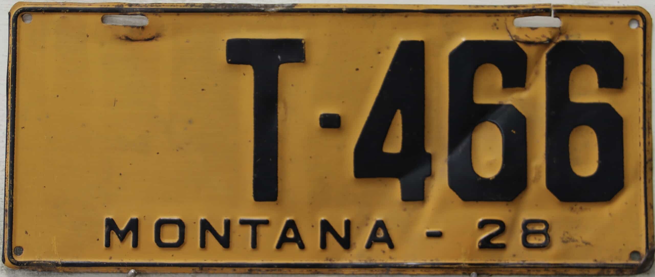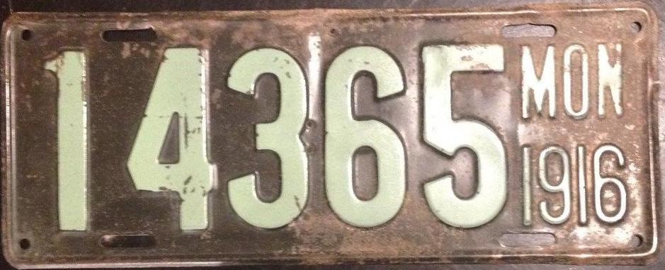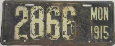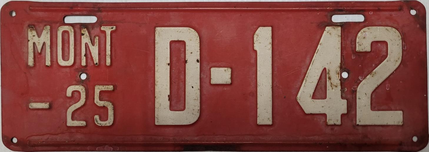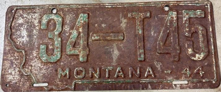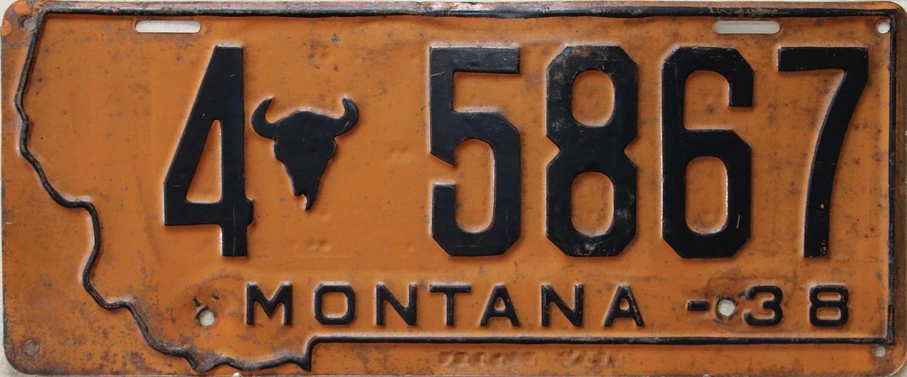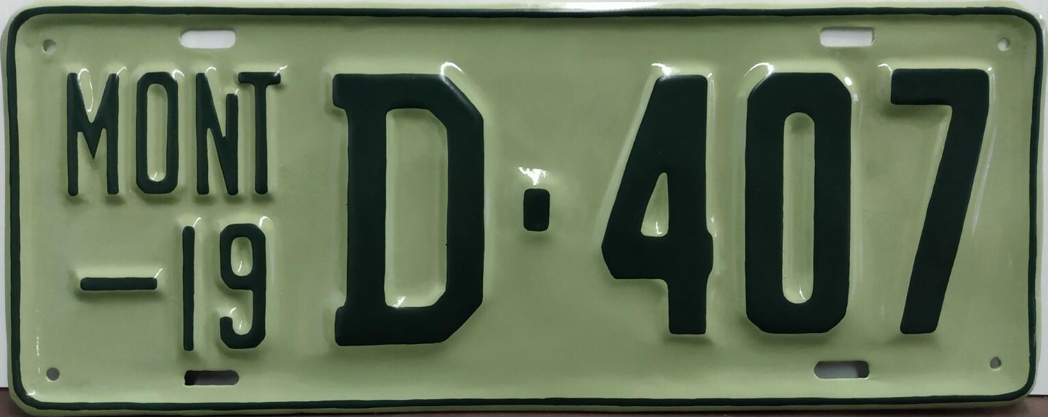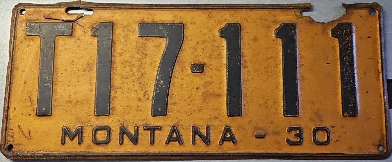 | 1941, старший известный номер мотоциклов - 129. легковые автомобили - 1-9003, 2-124, 2-4458, 3-7007, 4-325, 4-2691, 6-5566, 12-1366, 20-2883, 29-258, 43-857, обратная сторона. грузовики - 15-T110 (перекрас), 21-T727, 54-T9, обратная сторона. образец знака для отделений дорожной полиции - 00-000. дополнительный знак прицепа Монтанской железнодорожной комиссии, 1941-1942 - MRC Tr.-323, обратная сторона, был с чёрными буквами на жёлтом фоне.  |