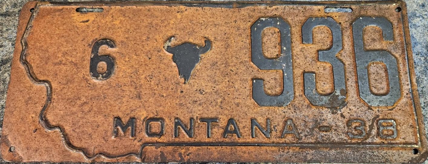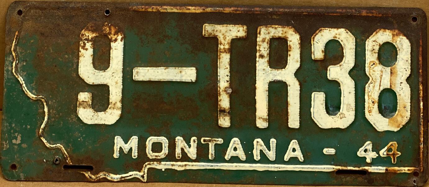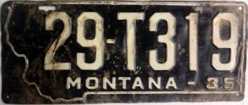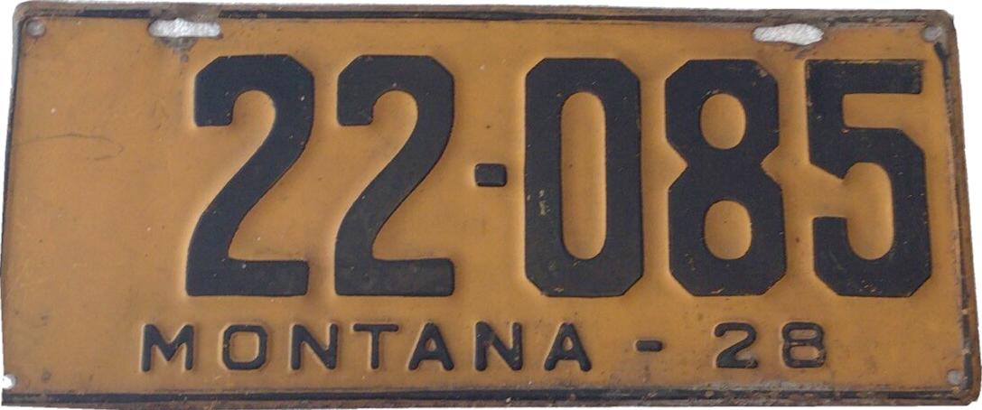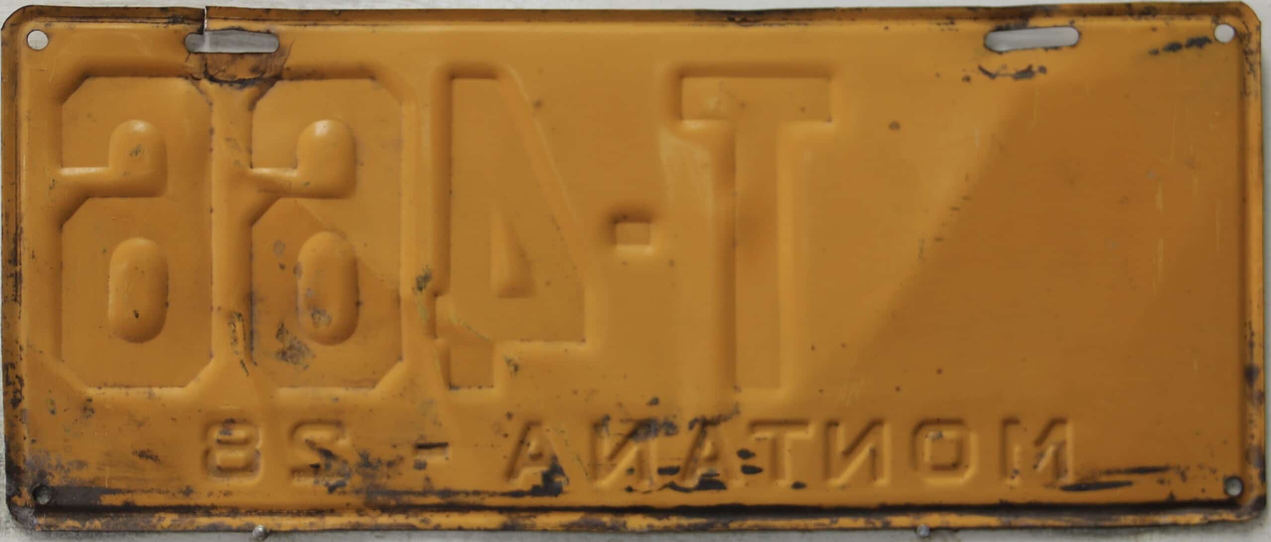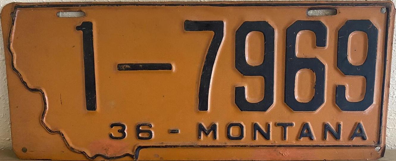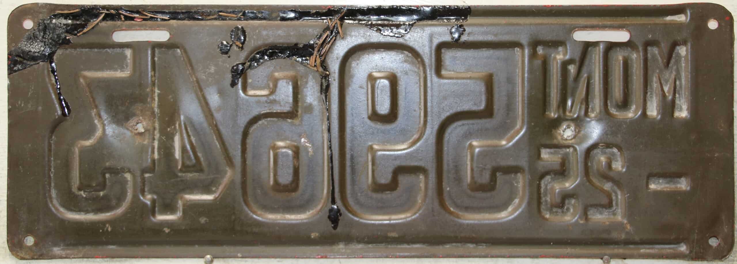 | 1941, старший известный номер мотоциклов - 129. легковые автомобили - 1-9003, 2-124, 2-4458, 3-7007, 4-325, 4-2691, 6-5566, 12-1366, 20-2883, 29-258, 43-857, обратная сторона. грузовики - 15-T110 (перекрас), 21-T727, 54-T9, обратная сторона. образец знака для отделений дорожной полиции - 00-000. дополнительный знак прицепа Монтанской железнодорожной комиссии, 1941-1942 - MRC Tr.-323, обратная сторона, был с чёрными буквами на жёлтом фоне.  |