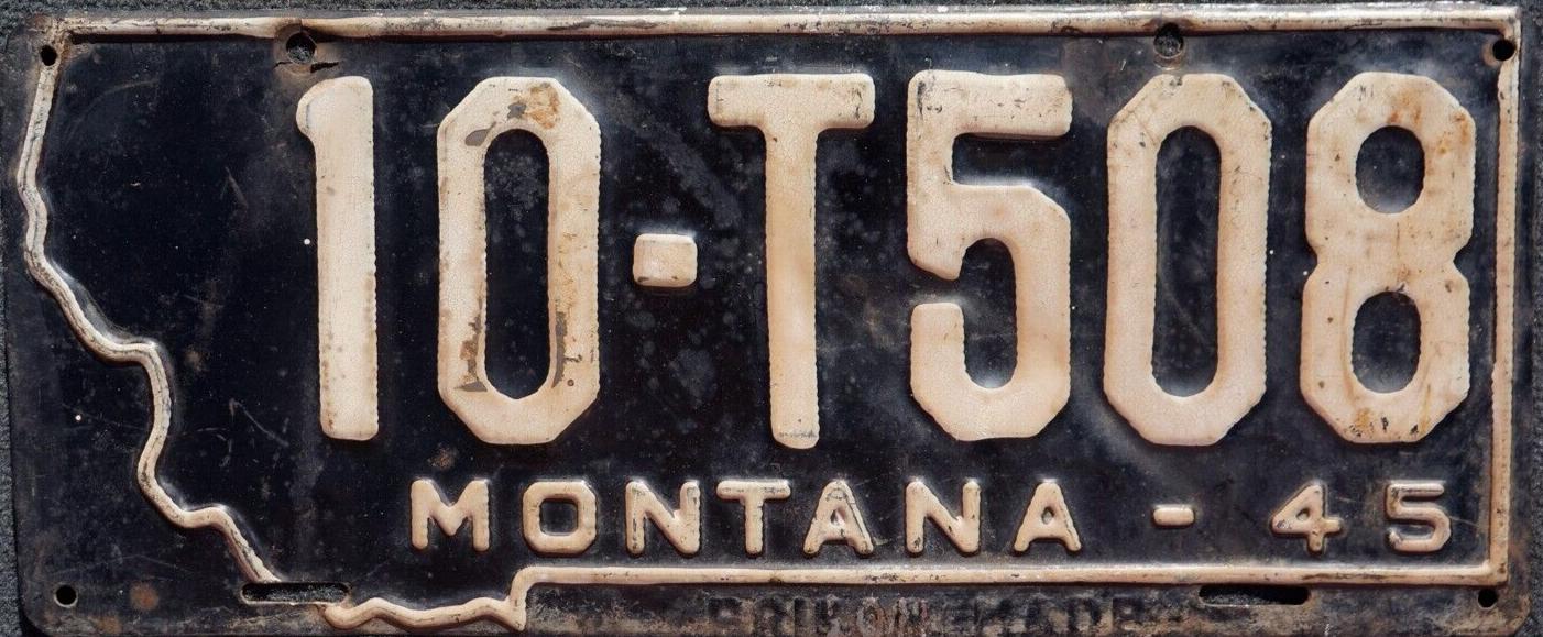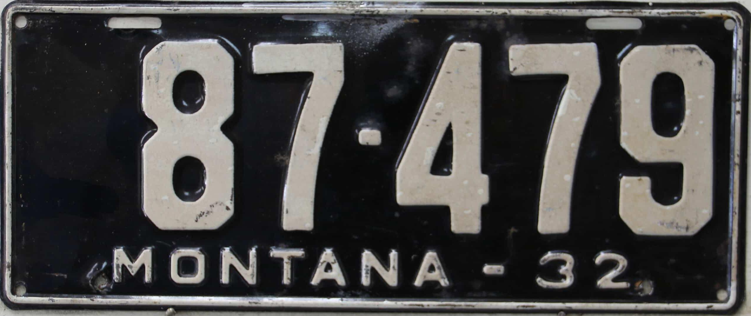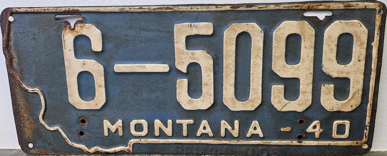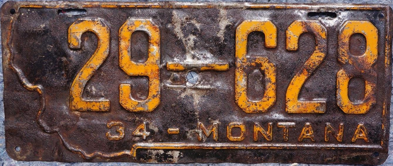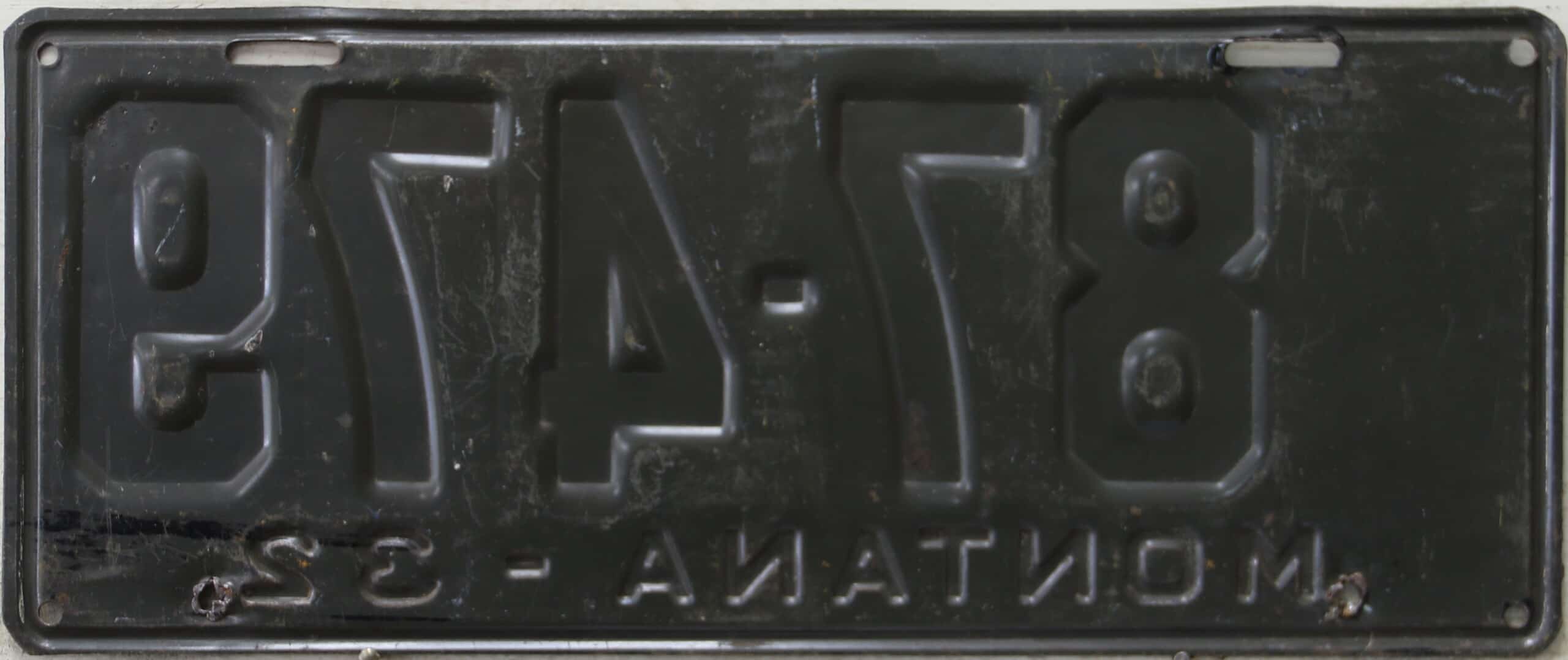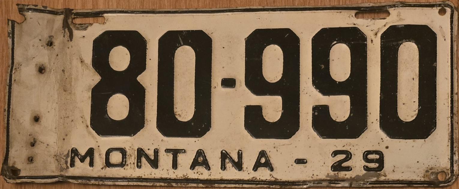 | 1941, старший известный номер мотоциклов - 129. легковые автомобили - 1-9003, 2-124, 2-4458, 3-7007, 4-325, 4-2691, 6-5566, 12-1366, 20-2883, 29-258, 43-857, обратная сторона. грузовики - 15-T110 (перекрас), 21-T727, 54-T9, обратная сторона. образец знака для отделений дорожной полиции - 00-000. дополнительный знак прицепа Монтанской железнодорожной комиссии, 1941-1942 - MRC Tr.-323, обратная сторона, был с чёрными буквами на жёлтом фоне.  |