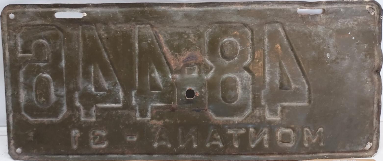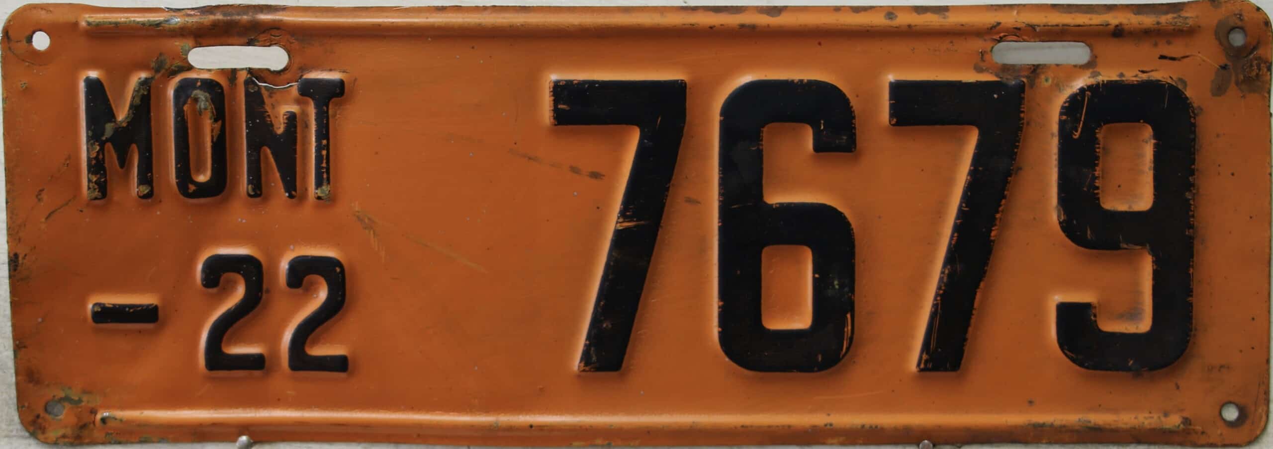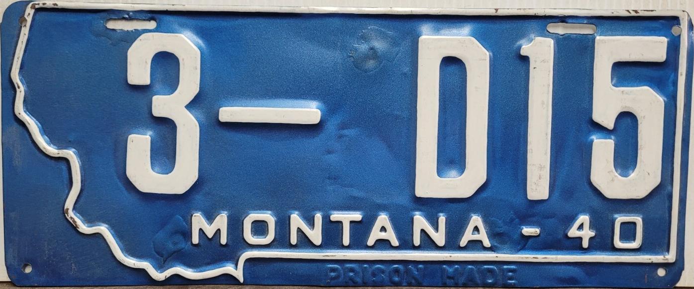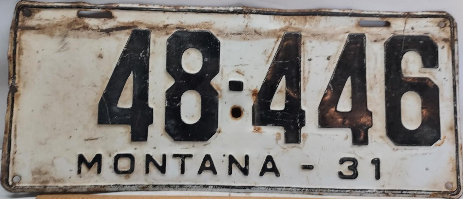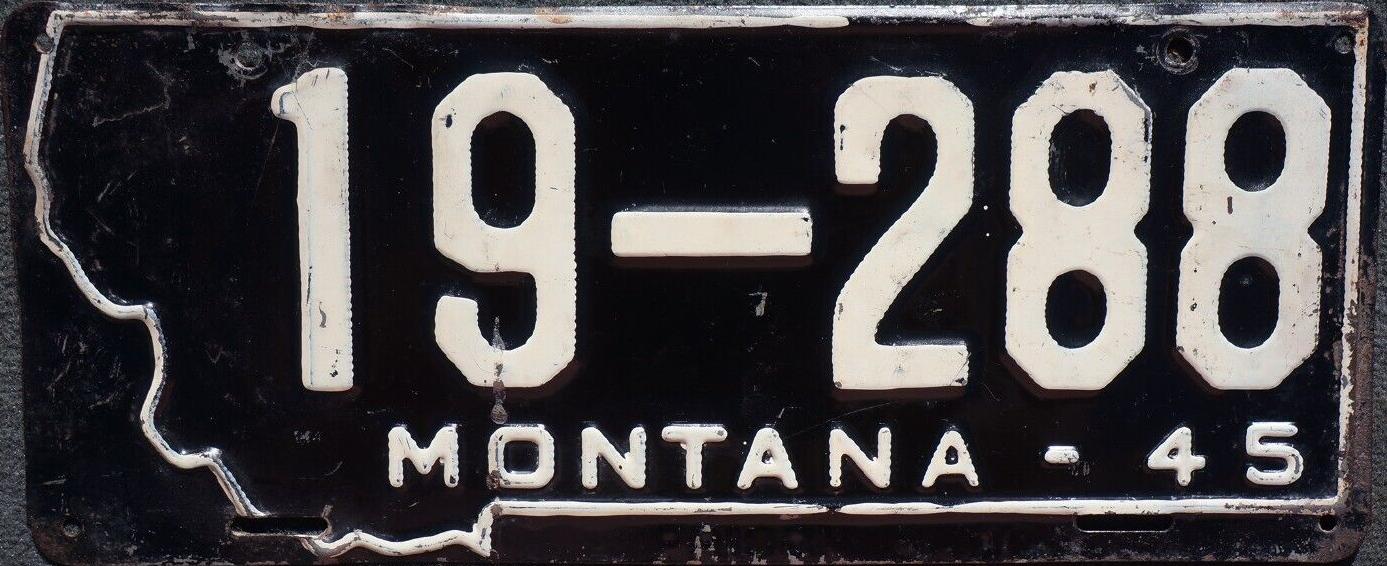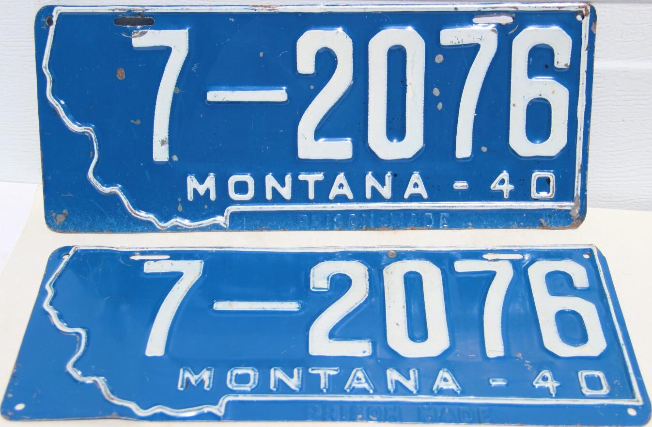 | 1941, старший известный номер мотоциклов - 129. легковые автомобили - 1-9003, 2-124, 2-4458, 3-7007, 4-325, 4-2691, 6-5566, 12-1366, 20-2883, 29-258, 43-857, обратная сторона. грузовики - 15-T110 (перекрас), 21-T727, 54-T9, обратная сторона. образец знака для отделений дорожной полиции - 00-000. дополнительный знак прицепа Монтанской железнодорожной комиссии, 1941-1942 - MRC Tr.-323, обратная сторона, был с чёрными буквами на жёлтом фоне.  |