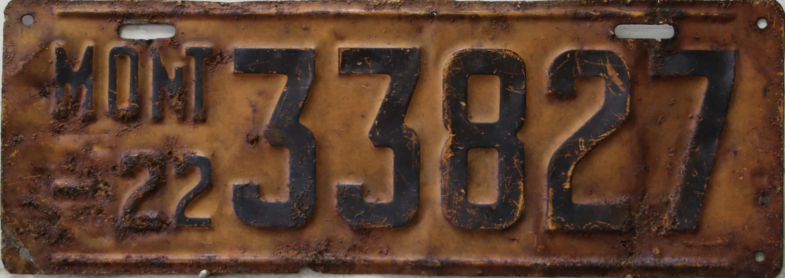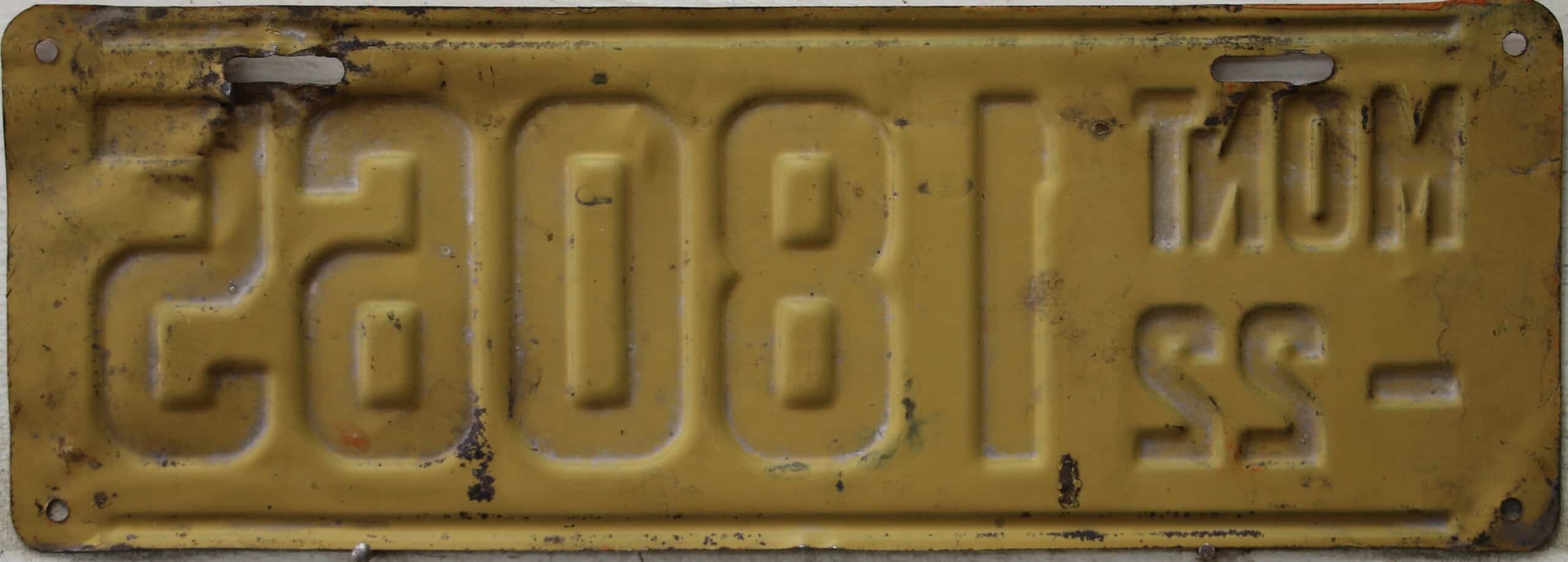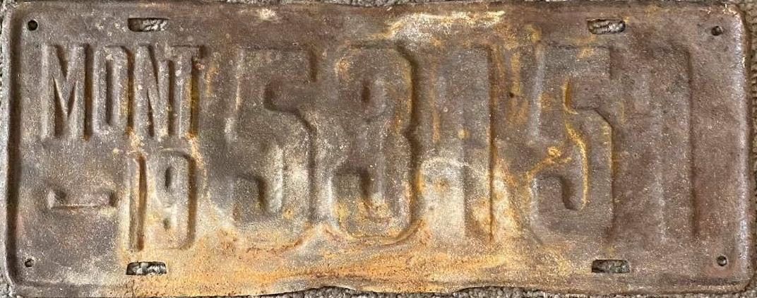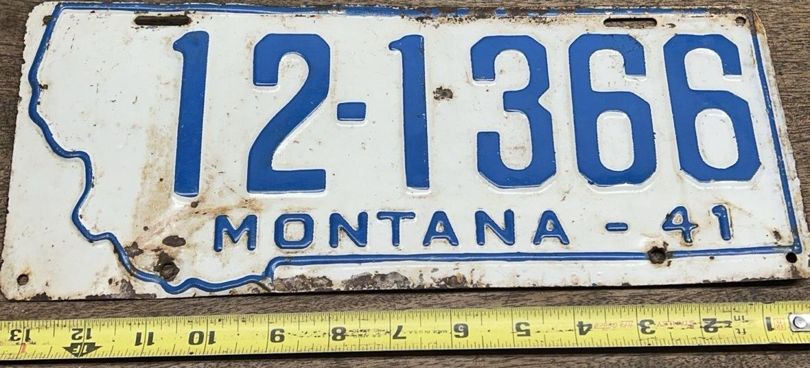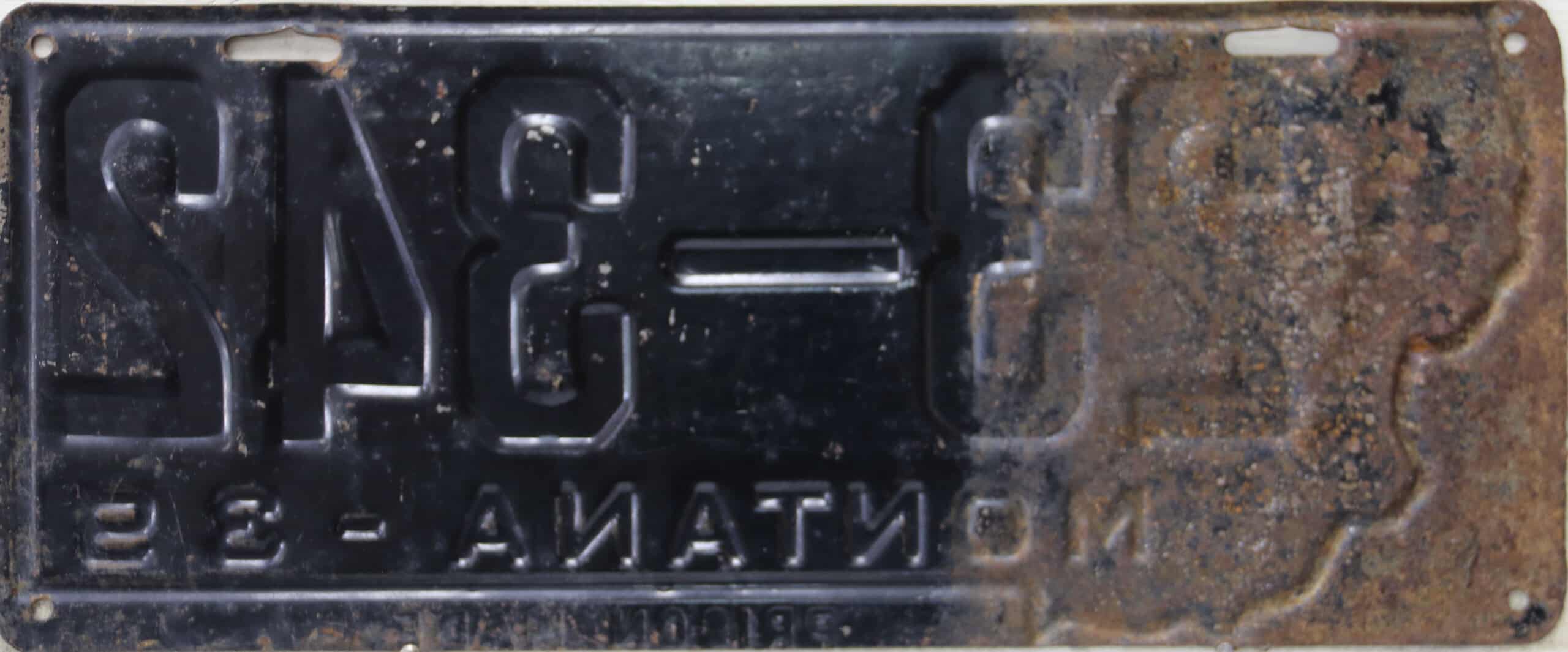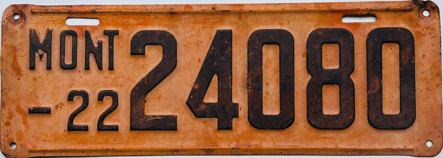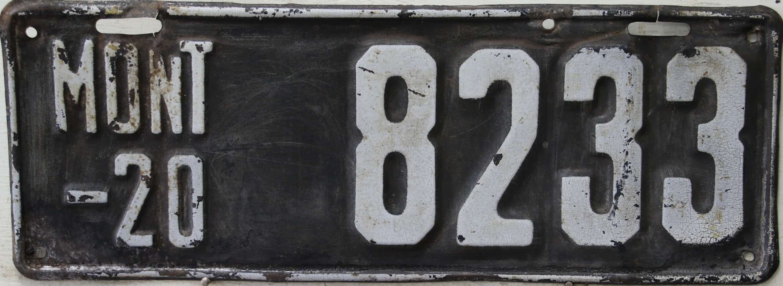 | 1941, старший известный номер мотоциклов - 129. легковые автомобили - 1-9003, 2-124, 2-4458, 3-7007, 4-325, 4-2691, 6-5566, 12-1366, 20-2883, 29-258, 43-857, обратная сторона. грузовики - 15-T110 (перекрас), 21-T727, 54-T9, обратная сторона. образец знака для отделений дорожной полиции - 00-000. дополнительный знак прицепа Монтанской железнодорожной комиссии, 1941-1942 - MRC Tr.-323, обратная сторона, был с чёрными буквами на жёлтом фоне.  |