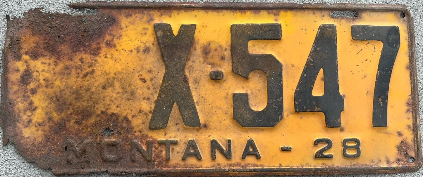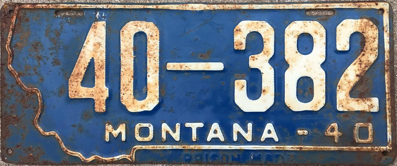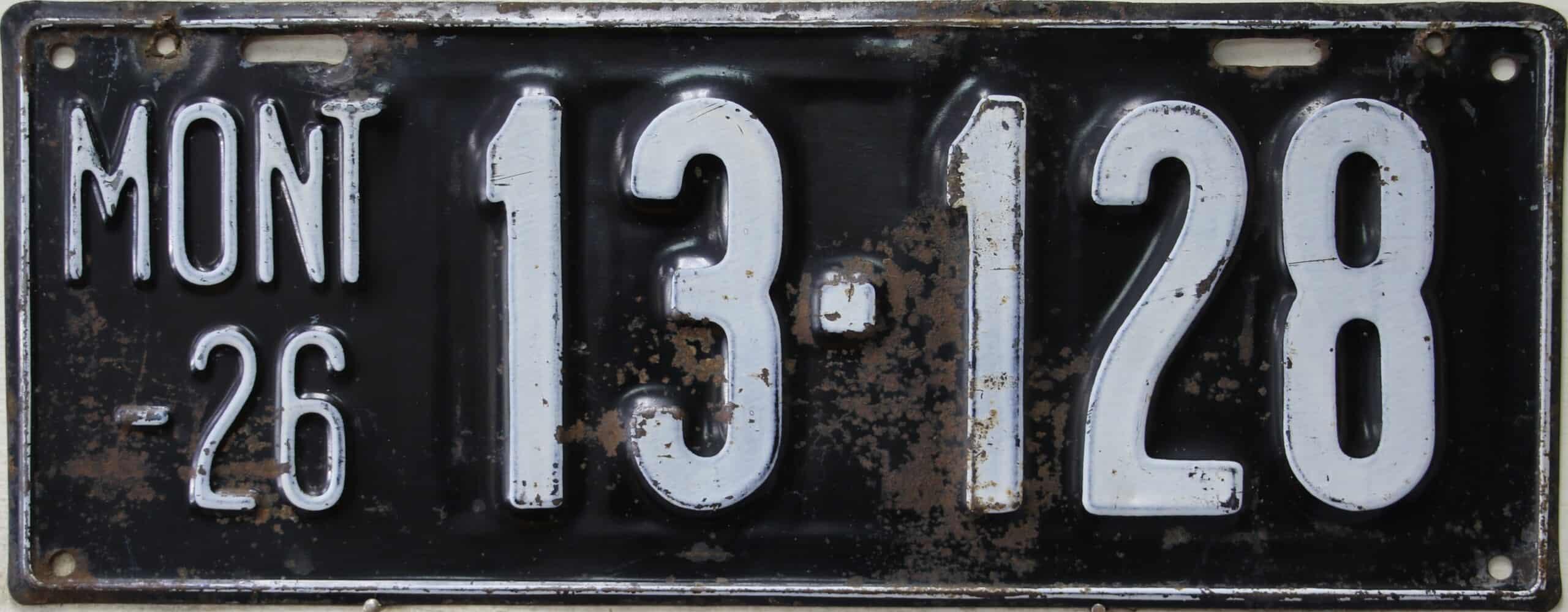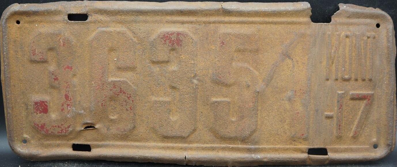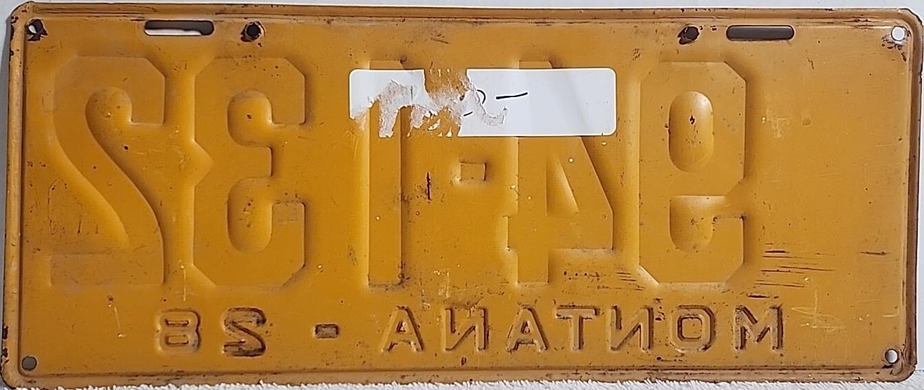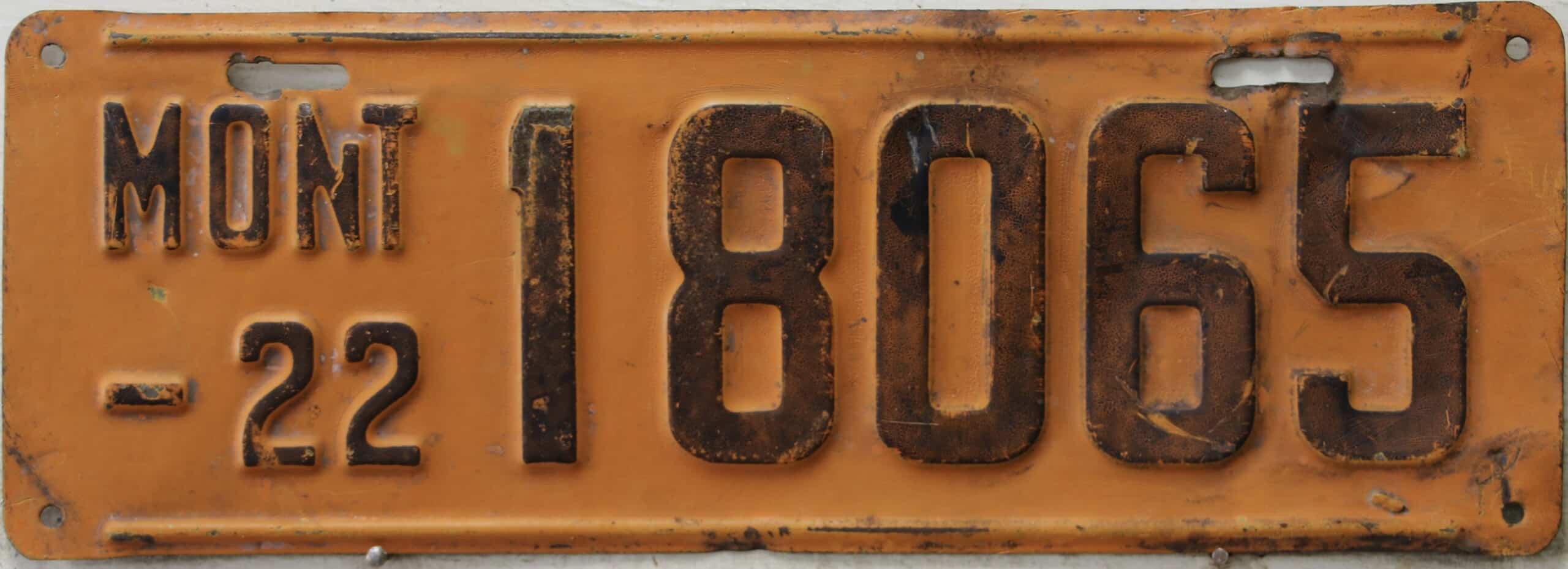 | 1941, старший известный номер мотоциклов - 129. легковые автомобили - 1-9003, 2-124, 2-4458, 3-7007, 4-325, 4-2691, 6-5566, 12-1366, 20-2883, 29-258, 43-857, обратная сторона. грузовики - 15-T110 (перекрас), 21-T727, 54-T9, обратная сторона. образец знака для отделений дорожной полиции - 00-000. дополнительный знак прицепа Монтанской железнодорожной комиссии, 1941-1942 - MRC Tr.-323, обратная сторона, был с чёрными буквами на жёлтом фоне.  |