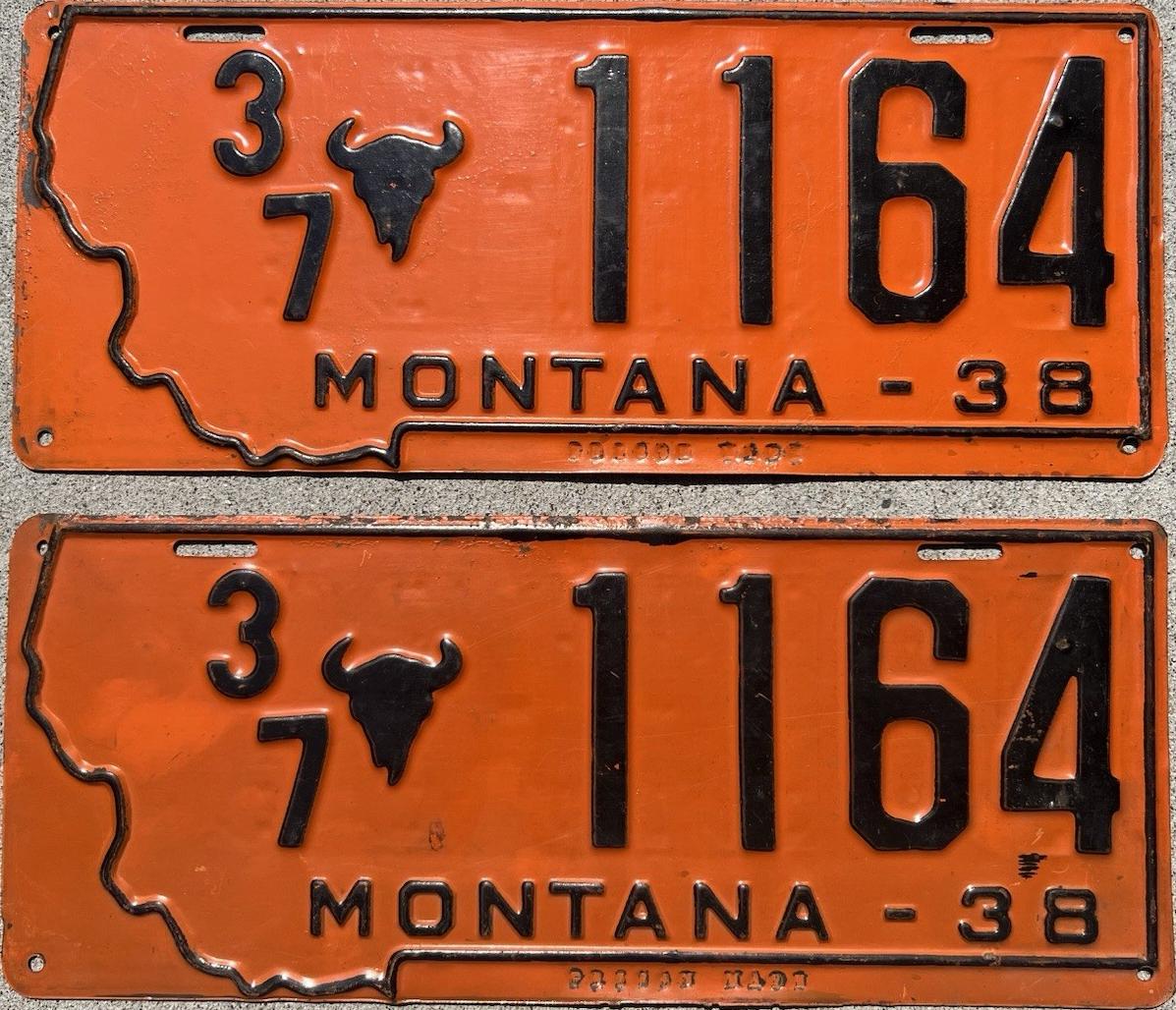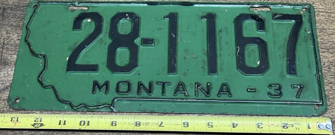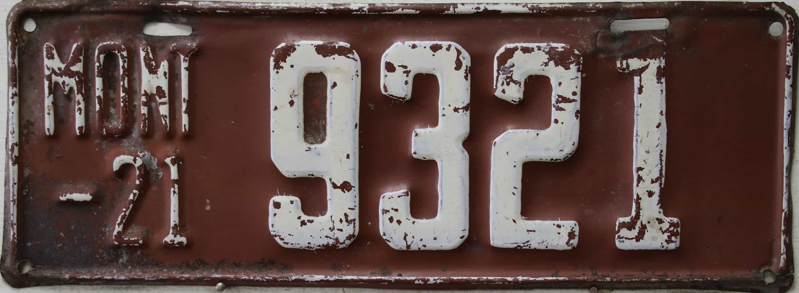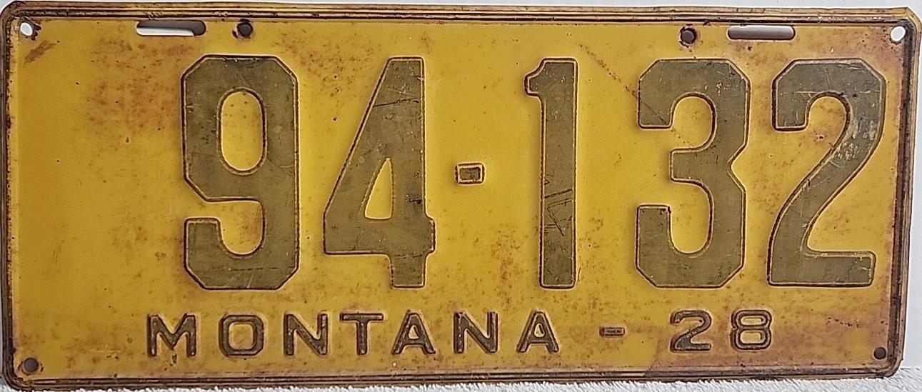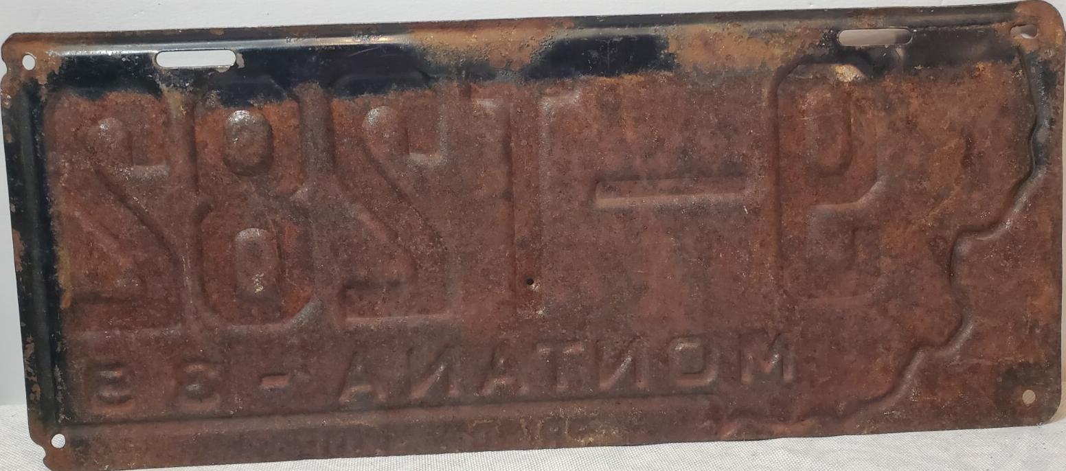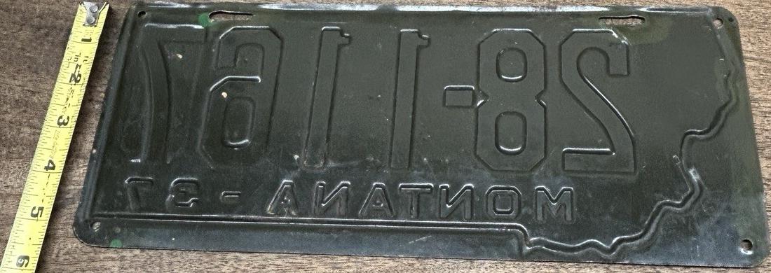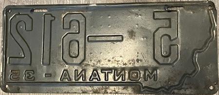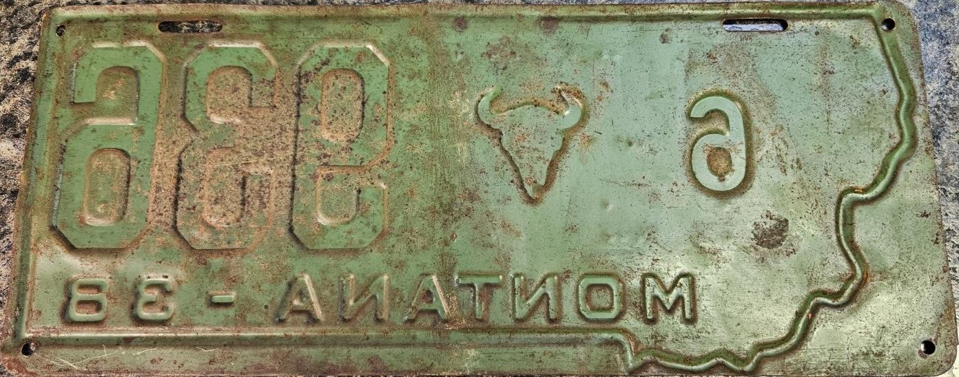 | 1941, старший известный номер мотоциклов - 129. легковые автомобили - 1-9003, 2-124, 2-4458, 3-7007, 4-325, 4-2691, 6-5566, 12-1366, 20-2883, 29-258, 43-857, обратная сторона. грузовики - 15-T110 (перекрас), 21-T727, 54-T9, обратная сторона. образец знака для отделений дорожной полиции - 00-000. дополнительный знак прицепа Монтанской железнодорожной комиссии, 1941-1942 - MRC Tr.-323, обратная сторона, был с чёрными буквами на жёлтом фоне.  |