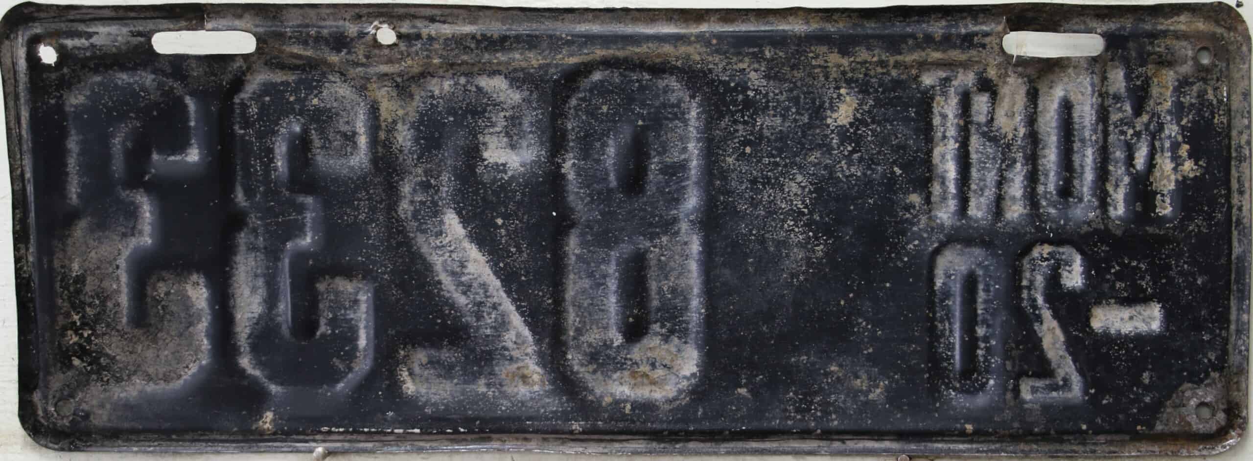 | 1923, старший известный номер, легковые автомобили - 65460, грузовики - T-5447, бесплатные - X-220, дилеры - D-284, мотоциклы - 294. легковые автомобили - 6013, 15065, 34581, 62595, обратная сторона.  |