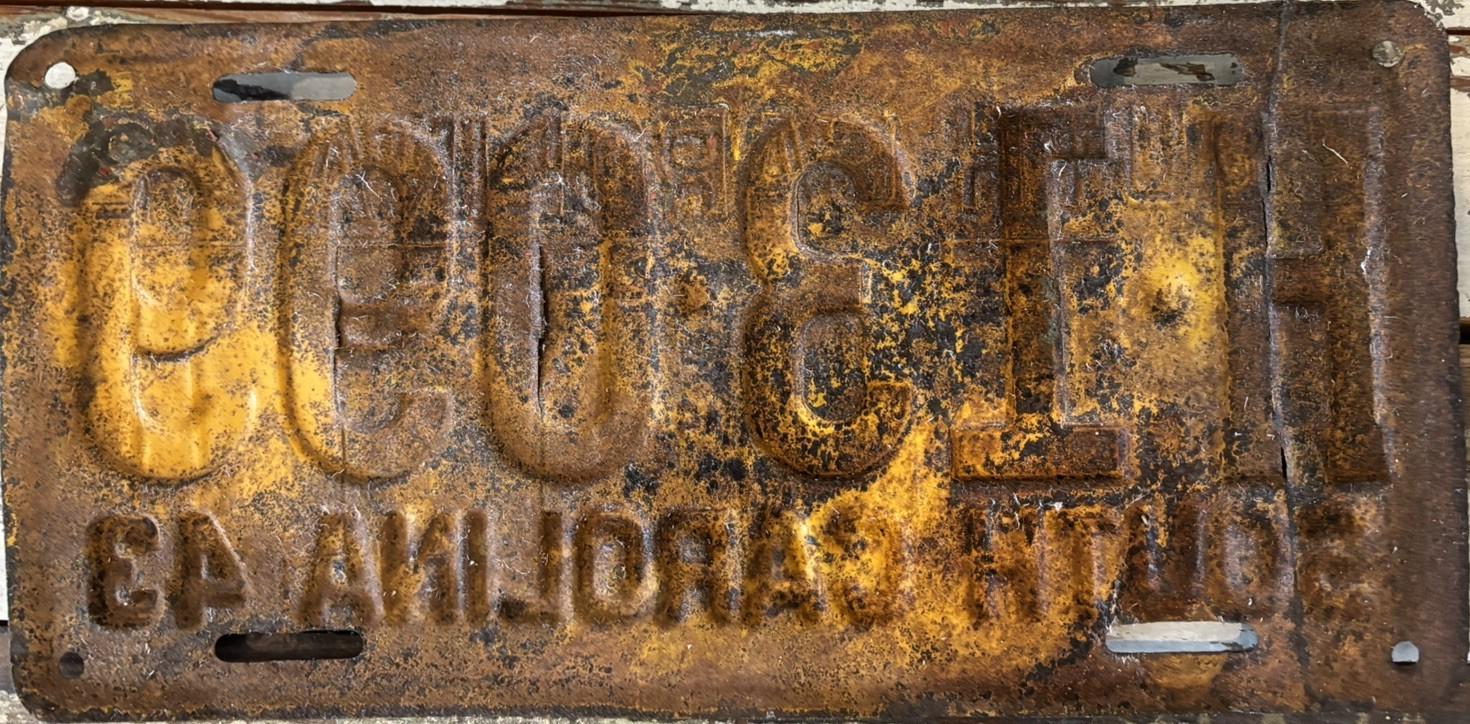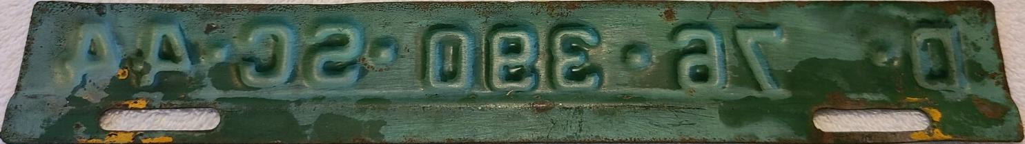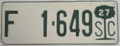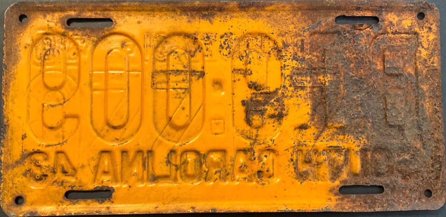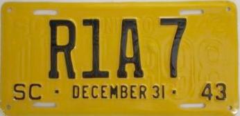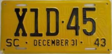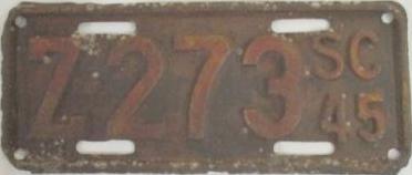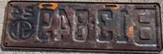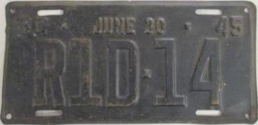 | 1945, старший известный номер, легковые - A-1-659, B-37-333, C-1 ... C-99-999, затем без буквы 100-000 ... 129-661, D-86-676, E-10-237, F-910, G-660, грузовики - H-24-100, J-8-053, дилеры - X-8, 1-тонные прицепы - 349, мотоциклы - Z-281. легковые 2001...2500 фунтов - B-37-333. легковые 2501...3000 фунтов - C-17-166. легковые 3001...3500 фунтов - D-21-479, D-49-565, D-50-565. легковые 3501...4000 фунтов - E-8-053. мотоциклы - Z-273. дополнение к номеру, пропуск в форт Яцкзон - 3164 (перекрас). дополнение к номеру какого-то резервного инженерного батальона, украшение(?), размер - 12 x 41/2 дюйма. |