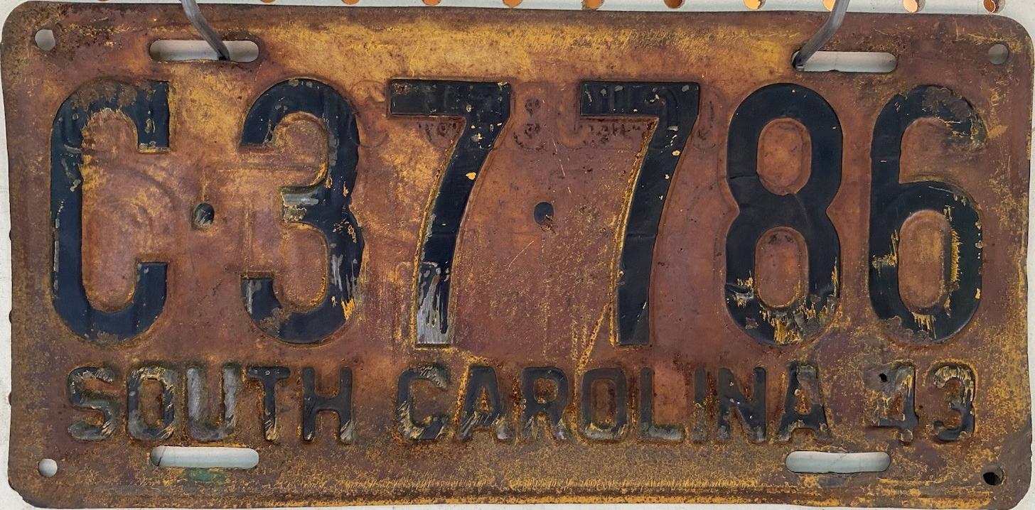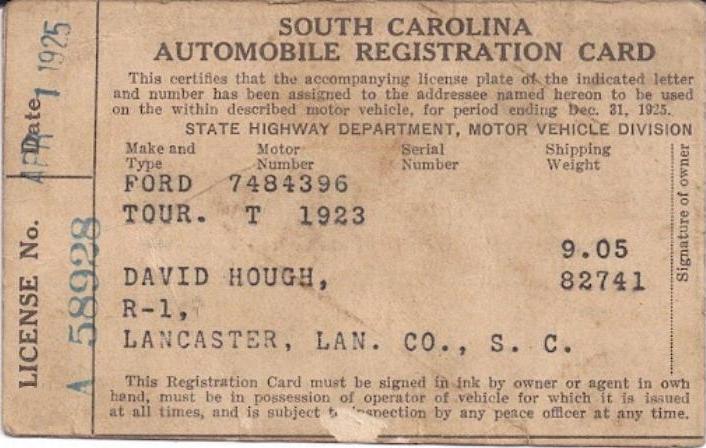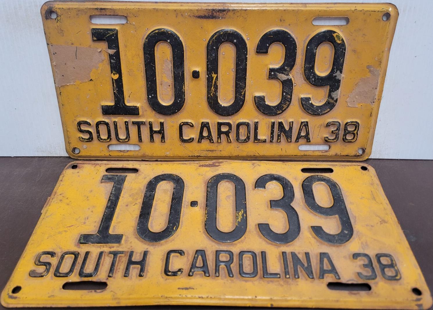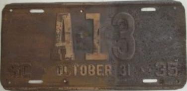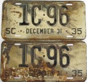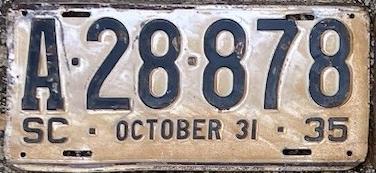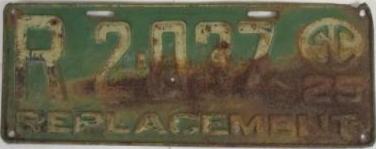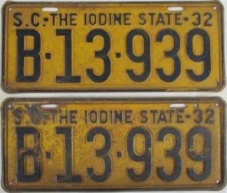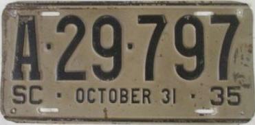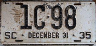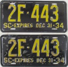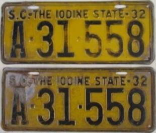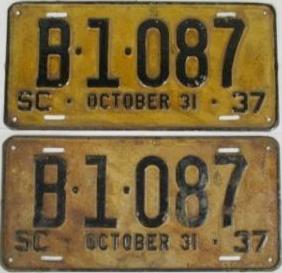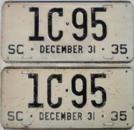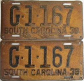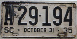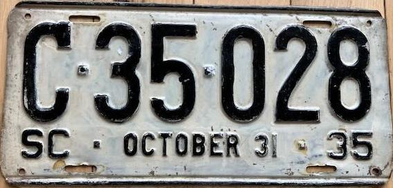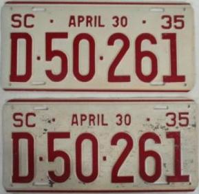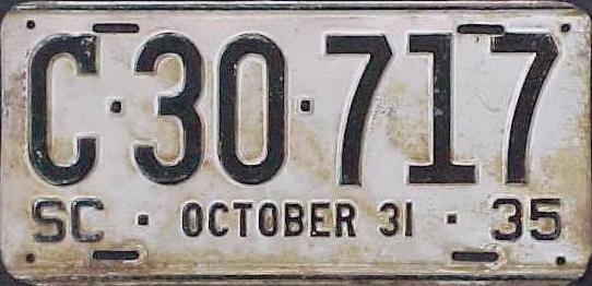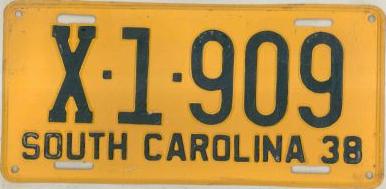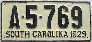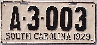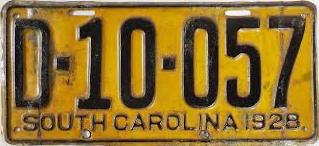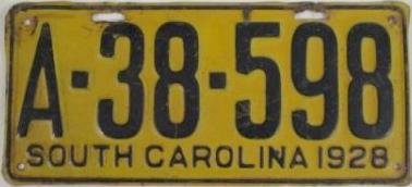 | 1928, старший известный номер, легковые - A129-974, B-38-656, C-16-049, D-10-057, E-5-140, F-404, G-331, грузовики - H-19-252, K-397, грузовики департамента шоссейных дорог - W-2-211, замена - R-2-347, дилеры - X-2-035, прицепы - S-432. легковые до 2000 фунтов - A-38-598. легковые 2001...2500 фунтов - B-16-846, B-29-328. легковые 3001...3500 фунтов - D-10-057. образец знака для отделений дорожной полиции (введены с 1923 года) - A-00-000 (перекрас). дополнительный знак свободного въезда в Чарльстон - CHARLESTON 1-321 (перекрас). |