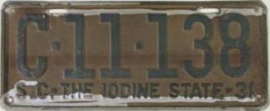 | 1931, старший известный номер, легковые - A-57-590, B-71-558, C-32-107, D-9-240, E-1-015, F-1-533, G-201, грузовики - H-10-799, J-7-614, L-182, K-100, M-105, замена - R-3-461, дилеры - X-1. легковые до 2000 фунтов - A-2-219, A-4-054. легковые 2501...3000 фунтов - C-5-629, C-11-138. |