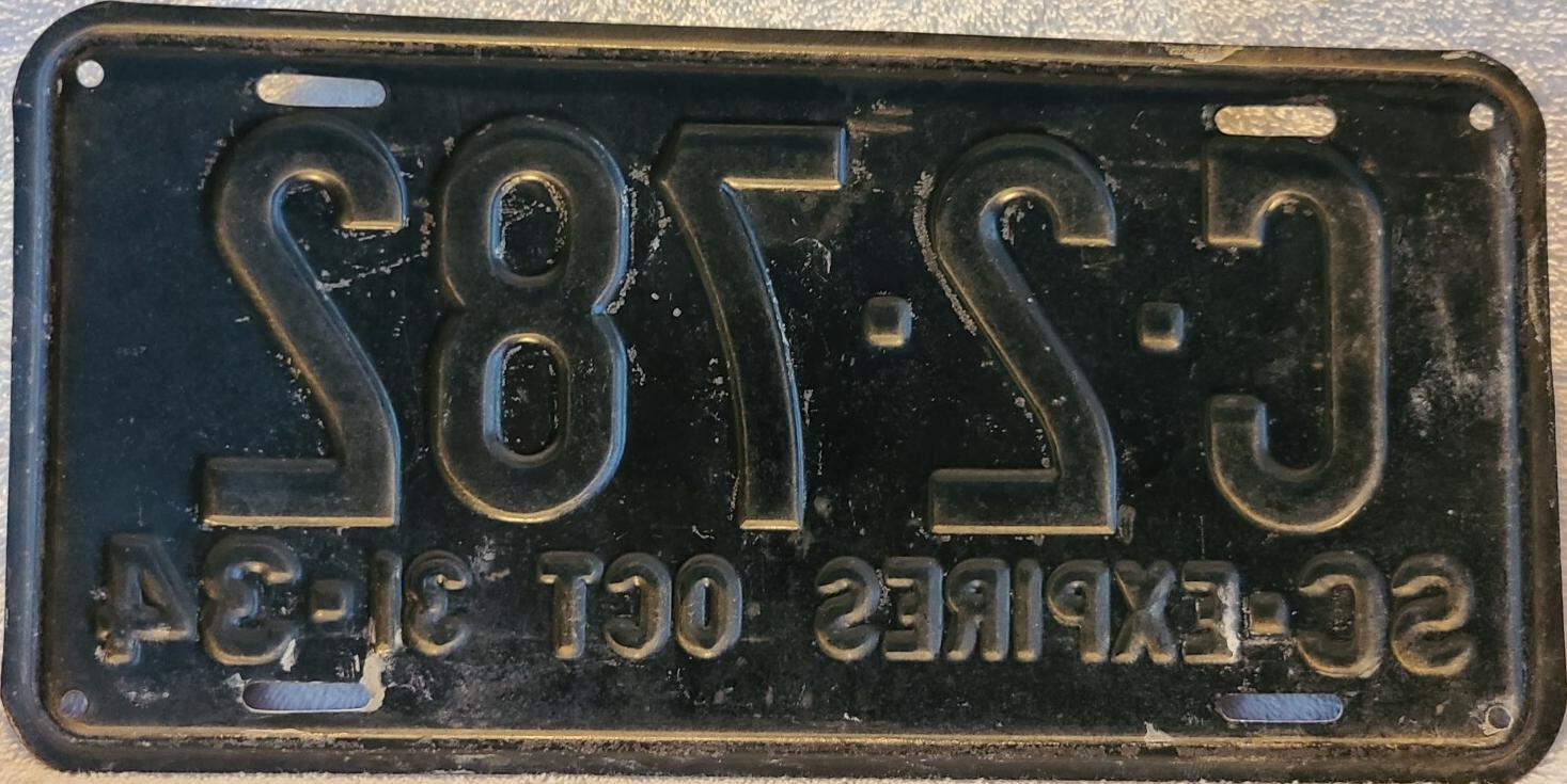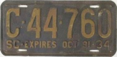 | 1934 на год, до 31 X 1934, старший известный номер, легковые - A-24-627, B-58-630, C-55-243, D-9-907, E-1-148, F-863, G-100, грузовики - H-9-373, J-9-077, L-866, замена - R-95, дилеры - X-1-183. легковые 2501...3000 фунтов - C-2-782, C-41-567, C-44-760, обратная сторона. |