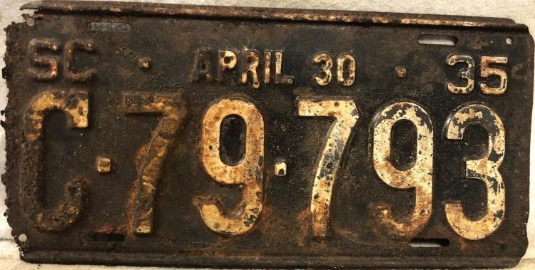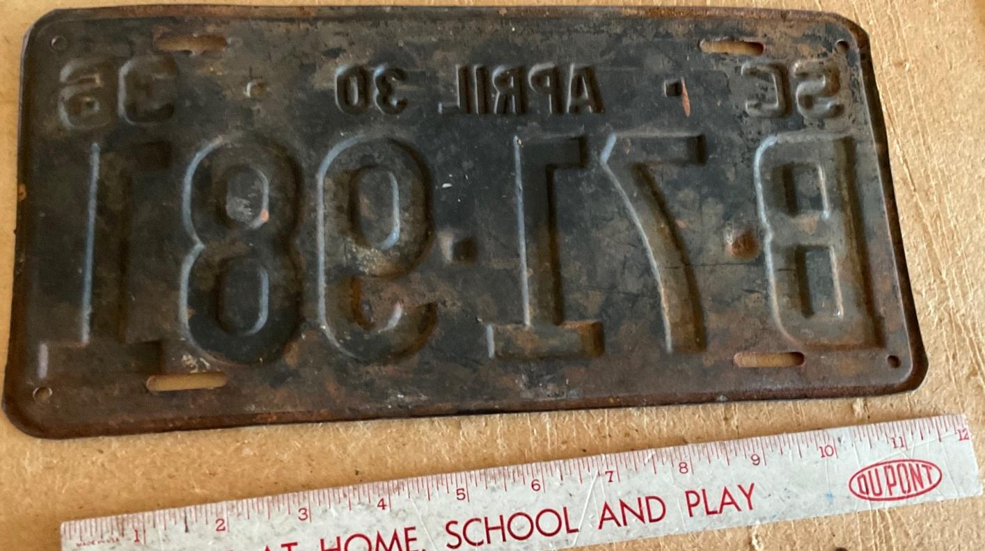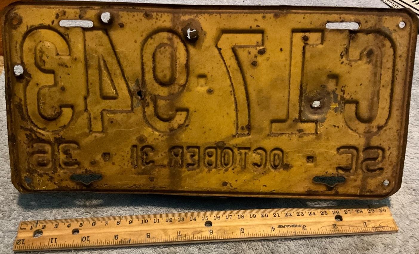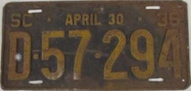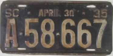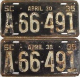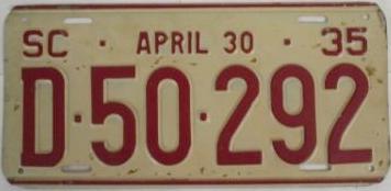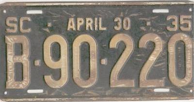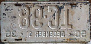 | 1935 на год, до 31 X 1935, старший известный номер, легковые - A-29-799, B-67-000, C-73-975, D-7-254, E-1-721, F-79, G-18, такси - A-13, C-671, грузовики - H-10-112, L-580, наёмные прицепы - S-2-084. легковые до 2000 фунтов - A-26-337, A-28-878, A-29-064, A-29-194, A-29-797. такси до 2000 фунтов (белые на тёмно-бордовом) - A-13. легковые 2001...2500 фунтов - B-66-824, B-66-837, B-66-839. легковые 2501...3000 фунтов - C-30-717, C-35-028, C-57-116 (перекрас). наёмные прицепы (белые на тёмно-бордовом) - S-2-070. |