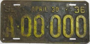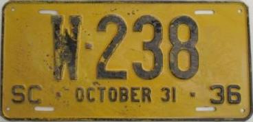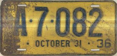 | 1936 на год, до 31 X 1936, старший известный номер, легковые - A-27-648, B-62-562, C-83-941, D-16-459, E-3-044, F-517, G-13, грузовики - H-9-836, J-10-379, M-5, грузовики департамента шоссейных дорог - W-973, дилеры - X-1-556, прицепы - S-3-159, мотоциклы - Z-56. легковые до 2000 фунтов - A-7-082, A-11-563. легковые 2001...2500 фунтов - B-678, B-7-314, обратная сторона. легковые 2501...3000 фунтов - C-7-469, C-15-777, C-66-682, C-77-803, C-81-136, обратная сторона. легковые 3001...3500 фунтов - D-844, D-15-046 (перекрас). легковые 4001...4500 фунтов - F-29. грузовики до 1 тонны на пневматических шинах - H-5-940. 1-2-тонные грузовики на пневматических шинах - J-46. грузовики департамента шоссейных дорог - W-238, W-973. мотоциклы - Z-56 (перекрас). |