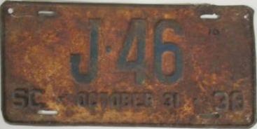 | 1938, старший известный номер, легковые - A-19-221, B-69-365, 1 ... 115-441, D-30-221, E-3-475, G-1-020, грузовики - H-15-667, J-8-716 (на полгода - J-50-000 ... J-52-015), L-1-888, I-7-605, грузовики департамента шоссейных дорог - W-958, дилеры - X-1-909, мотоциклы - Z-259. легковые до 2000 фунтов - A-3-765. легковые 2001...2500 фунтов - B-7-557. легковые 2501...3000 фунтов - 25, 1-300, 10-039, 31-720, 54-986, 65-624, 102-962, обратная сторона. легковые 3001...3500 фунтов - D-1-707. легковые 4501...5000 фунтов - G-131, G-1-167. грузовики до 1 тонны на пневматических шинах - H-15-667. грузовики до 1 тонны на литых шинах - I-1-012, I-6-575. дилеры - X-163, X-1-909 (перекрас). образец знака для отделений дорожной полиции - A-00-000. |