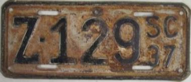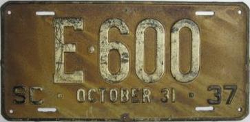 | 1937 на год, до 31 X 1937, старший известный номер, легковые - A-18-914, B-68-381, C-1 ... C-99-999, затем без буквы 100-000 ... 113-000, D-27-117, E-4-735, F-720, G-749, грузовики - H-16-301, J-84, I-5-139, дилеры - X-281, мотоциклы - Z-129. легковые 2001...2500 фунтов - B-173, B-1-087. легковые 2501...3000 фунтов - C-59-189, C-68-411, C-85-251, 110-067. легковые 3501...4000 фунтов - E-600 (перекрас). 1-2-тонные грузовики на пневматических шинах - J-5 (перекрас). образец знака для отделений дорожной полиции - A-00-000 (перекрас). мотоциклы - Z-129. |