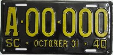 | 1940, старший известный номер, легковые - A-7-182, B-74-596, C-1 ... C-99-999, затем без буквы 100-000 ... 139-483, D-47-913, E-8-064, F-929, грузовики - H-13-608, J-9-653, N-1-496, P-5-22, частные автобусы - 502, дилеры - X-89, мотоциклы - Z-301. легковые 2501...3000 фунтов - 122-399. частные автобусы - 502 (перекрас). образец знака для отделений дорожной полиции - A-00-000. |