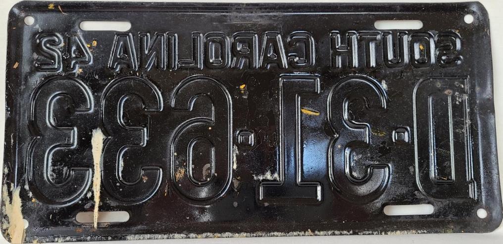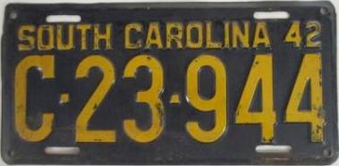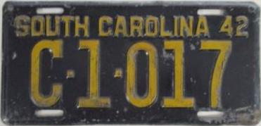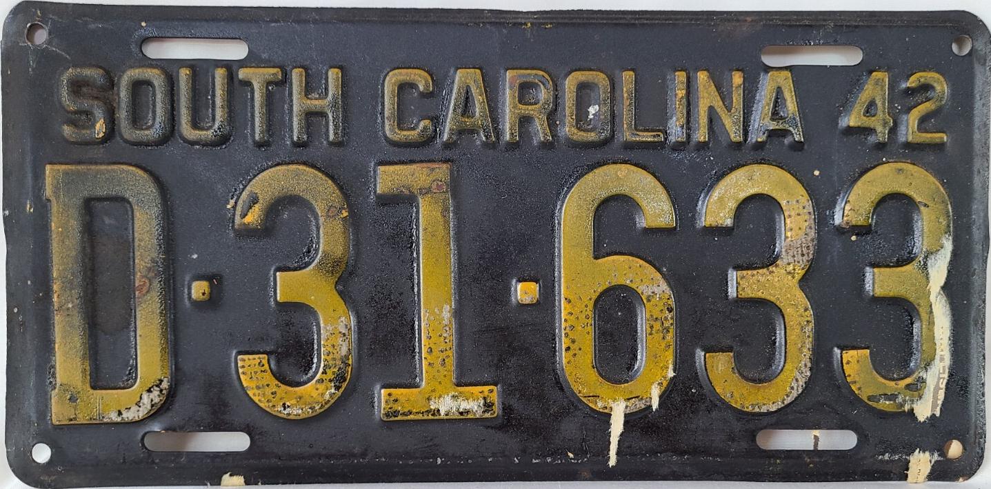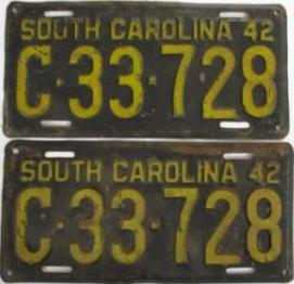 | 1942, старший известный номер, легковые - A-596, B-46-756, C-1 ... C-99-999, затем без буквы 100-000 ... 138-471, D-81-911, E-11-126, F-1-205, G-667, грузовики - H-18-601, J-6-111, N-151, дилеры - X-2-619, 1-тонные прицепы - 316, мотоциклы - Z-389. легковые 2001...2500 фунтов - B-33-186. легковые 2501...3000 фунтов - C-1-017, C-23-944, C-33-728, C-44-257, C-64-740 (перекрас?). легковые 3001...3500 фунтов - D-1-750, D-31-633, D-69-864 (перекрас), обратная сторона. дилеры - X-1-305. дополнение к номеру - пропуск на авиабазу Гринвилл - 961 (прессованное древесное волокно). |