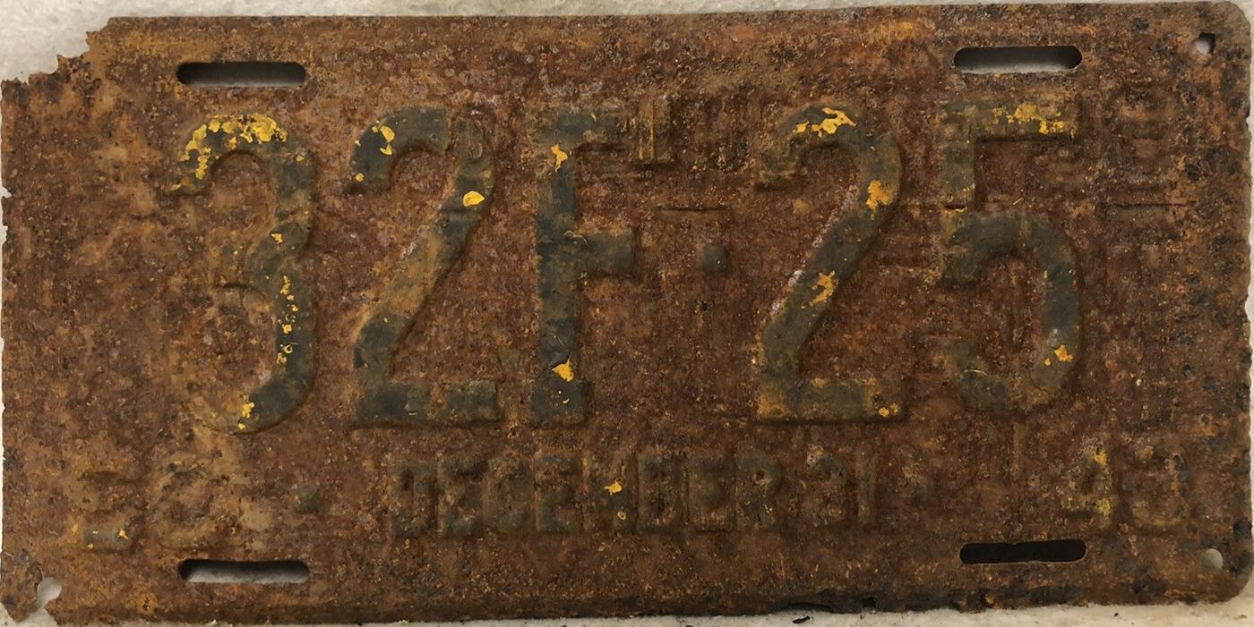 | 1925, старший известный номер, легковые - A125-102, B14-876, C18-317, D 6-881, E 117, грузовики - H 13-776, I1-859, замена - R 2-373, дилеры - X 2-389, мотоциклы - Z287. легковые до 2000 фунтов - A11-305 (перекрас), регистрационная карточка на Форд-Т фаэтон 1923 года, номер A58-928. легковые 2001...2500 фунтов - B13-040 (перекрас). замена - R 2-037, R 2-109 (перекрас). дилеры - X 2-304 (перекрас). |