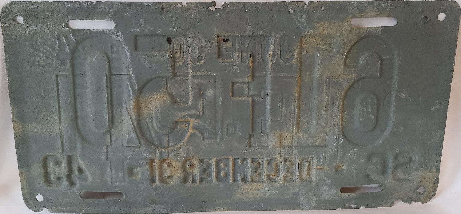 | 1943, старший известный номер, легковые - A-2-210, B-48-772, C-1 ... C-99-999, затем без буквы 100-000 ... 149-401, D-93-034, E-12-125, F-1-697, G-837, такси на полгода - D-50-295, грузовики - H-20-509, J-4-913, L-3-866, N-1-443, дилеры - X-2-700, 1-тонные прицепы - 492. легковые 2001...2500 фунтов - B-715 на знаке A-4-018 1941 года, B-19-009 на знаке C-24-220 1940 года, обратная сторона. легковые 2501...3000 фунтов - C-37-786 на знаке C-84-415 1940 года, C-53-542 (перепечатка), 107-169 на полугодовом знаке 51F-148 1941 года. легковые 3001...3500 фунтов - D-70-197 (перепечатка). грузовики до 1 тонны на пневматических шинах - H-2-299 на знаке D-28-609 1942 года, H-5-876 на знаке C-52-745 1940 года, H-18-357 (перепечатка), обратная сторона. |