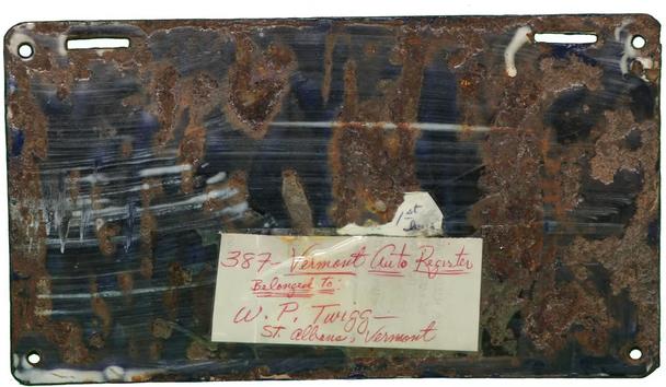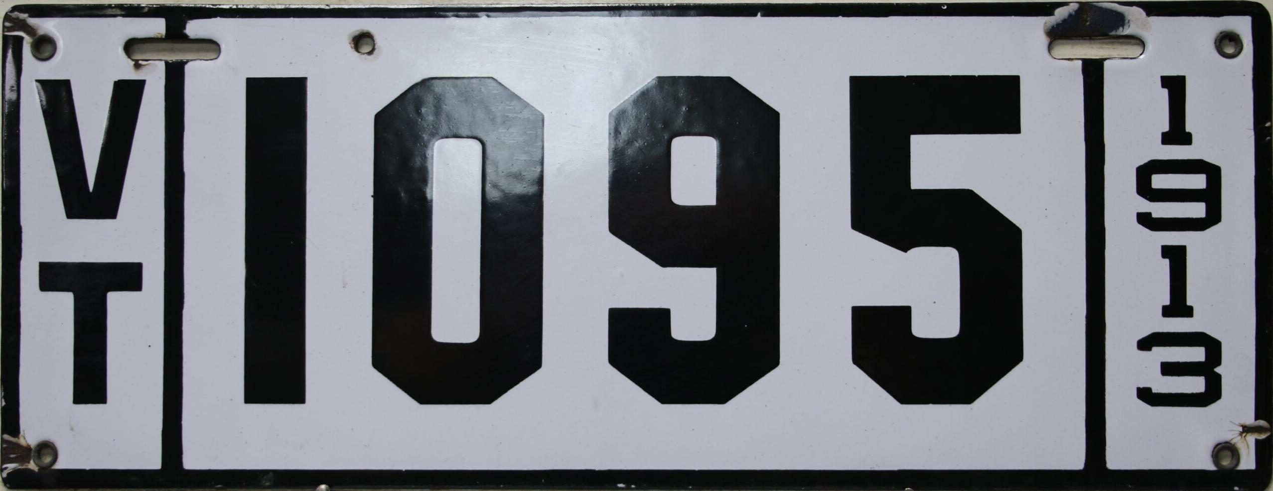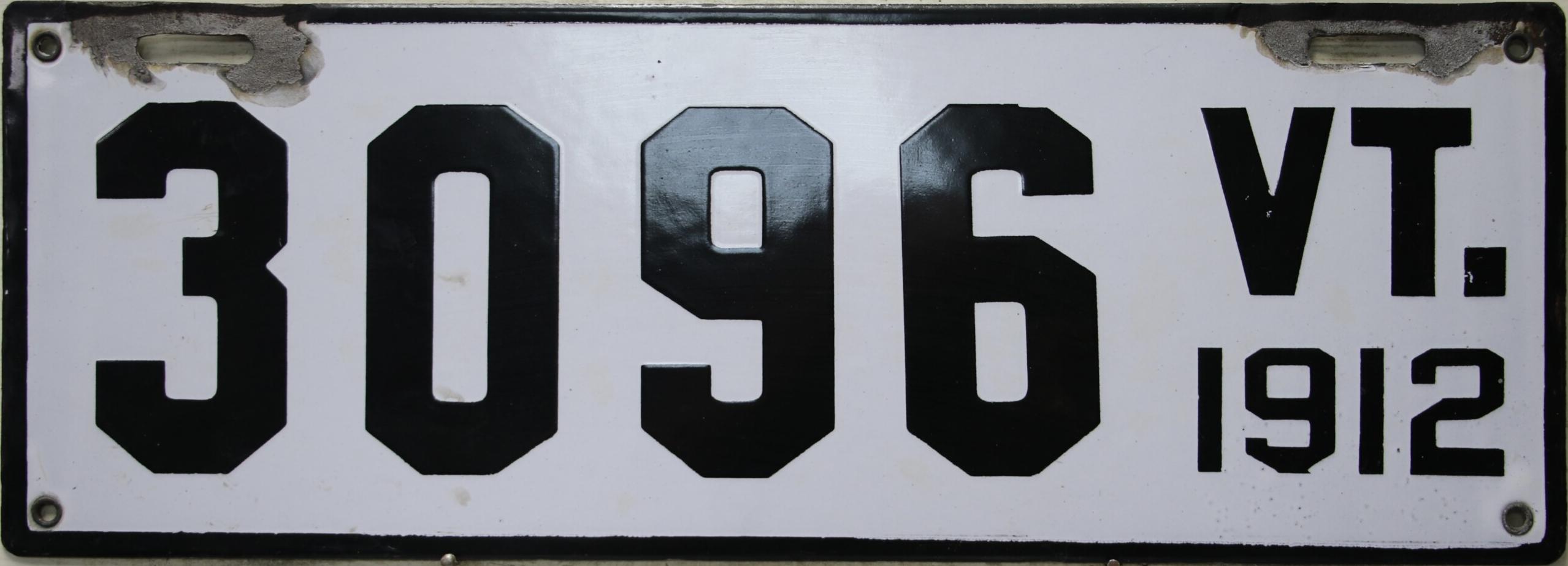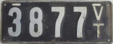 | 1917, старший известный номер, автомобили - 20289, мотоциклы - 700, временные - T259 ... T1407. У автомобильных знаков 1 ... 16556 и 16992 ... 17703 угловатый шрифт 1917 года, у знаков 16694 ... 16702 и 18158 ... - округлый шрифт 1918 года. автомобили - 5075, 9849, 11028, 12906, 13236, 15101, 16702, 16992, 17592, обратная сторона. временные - T259. |