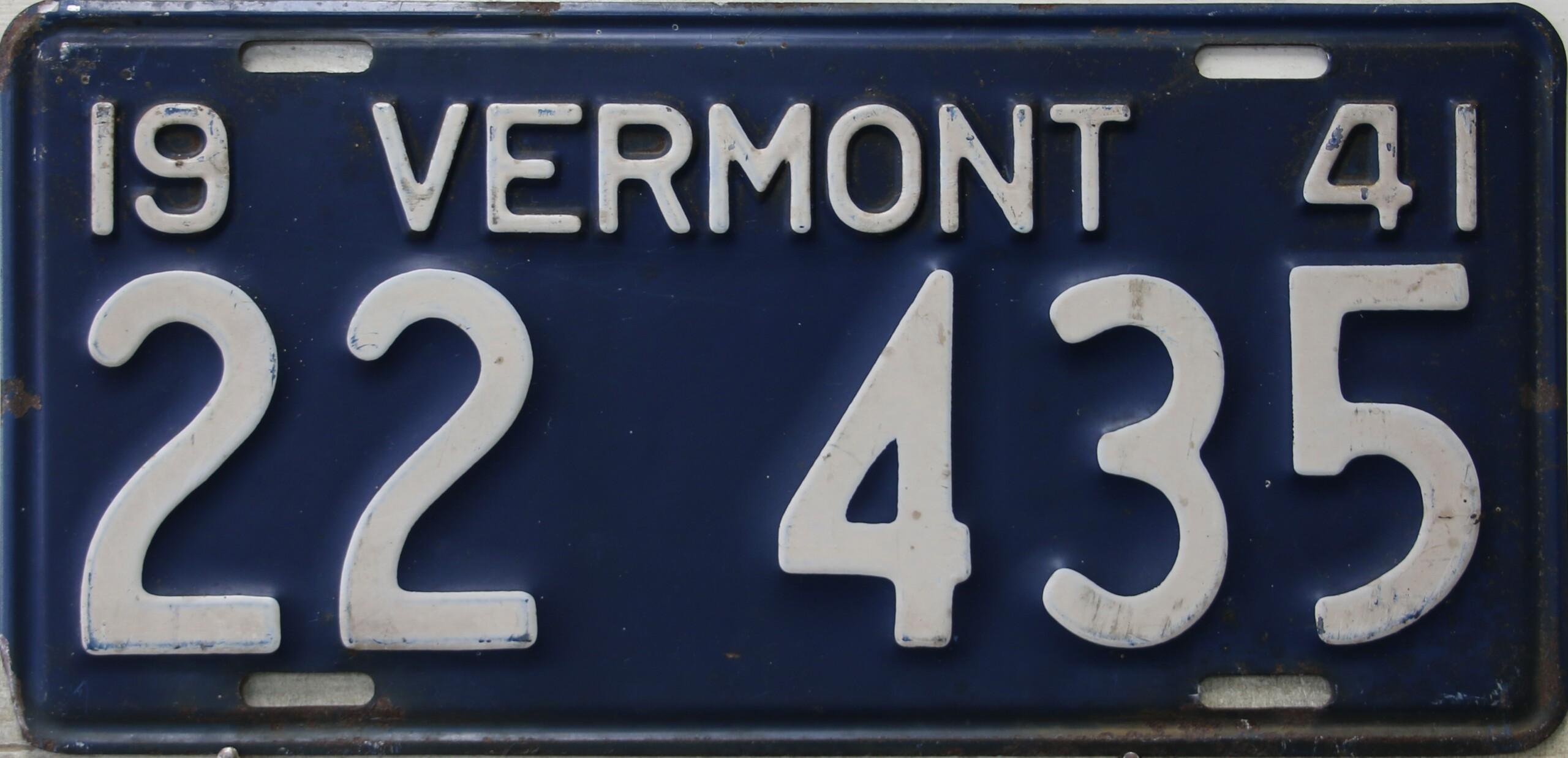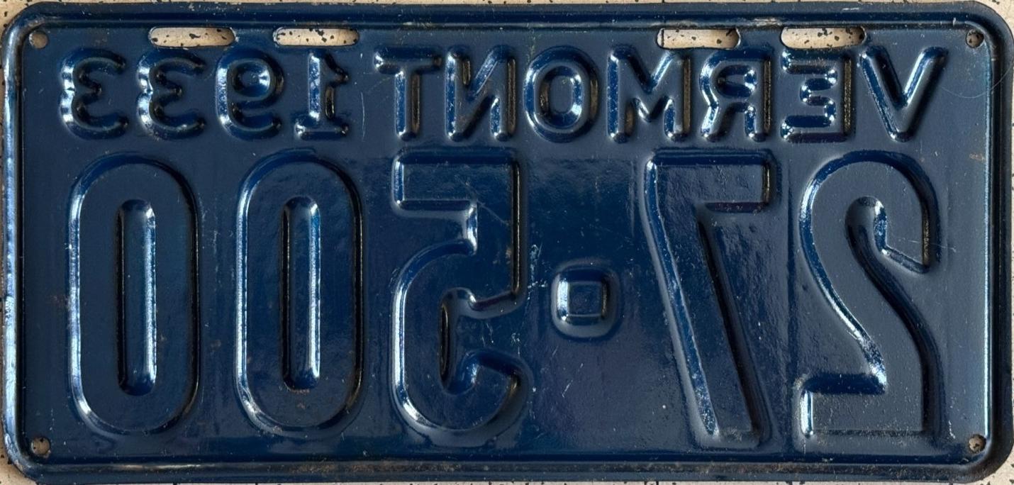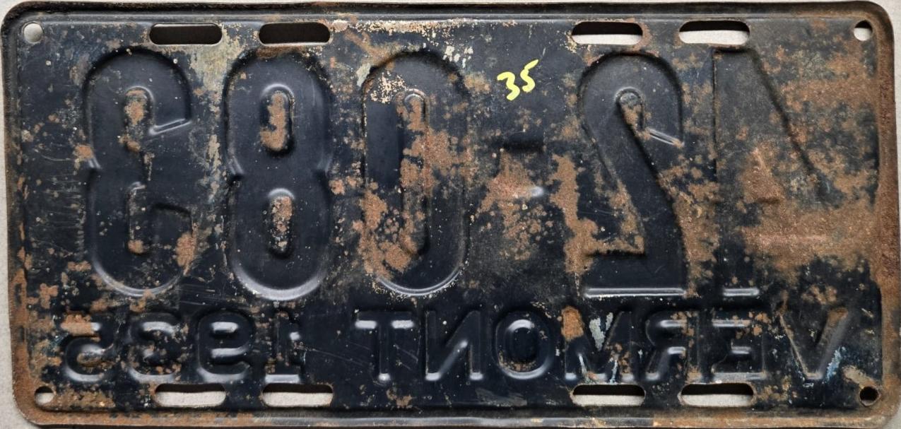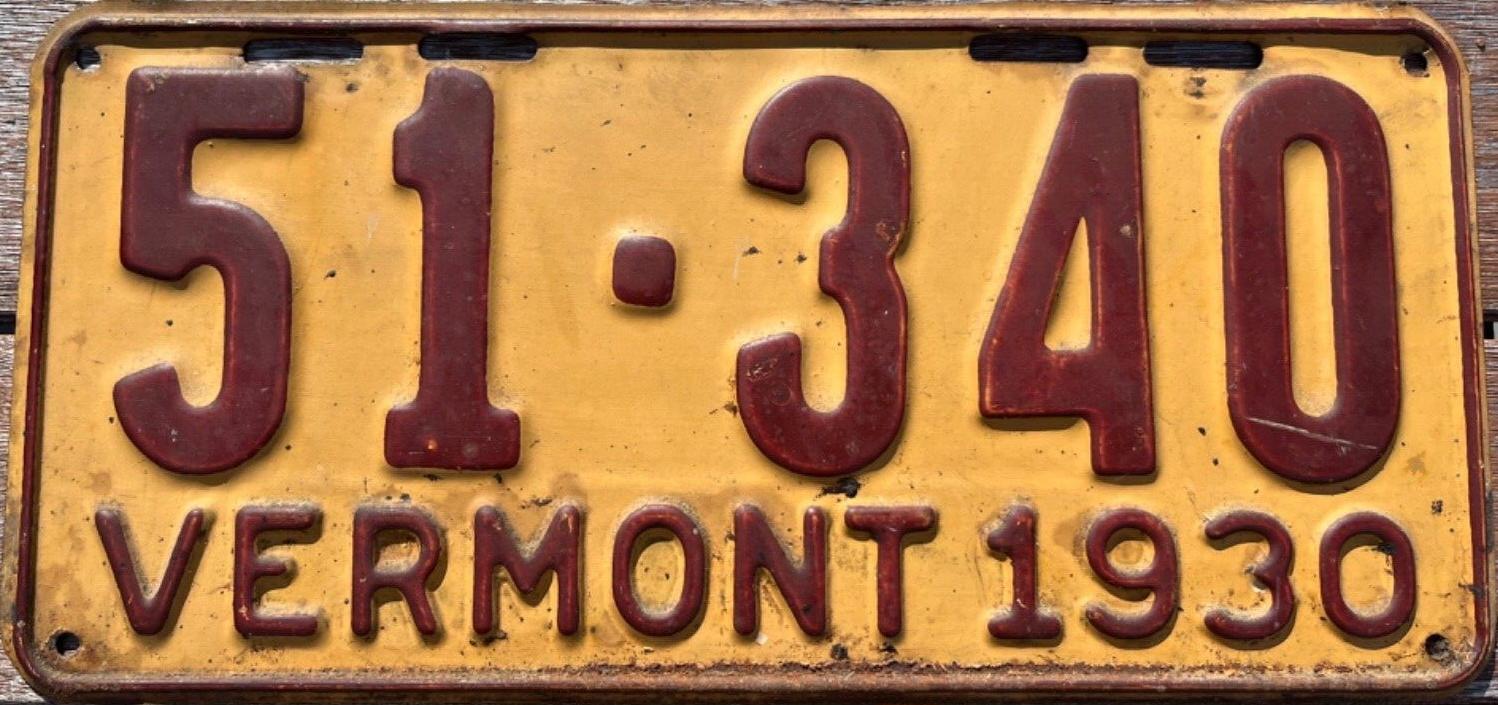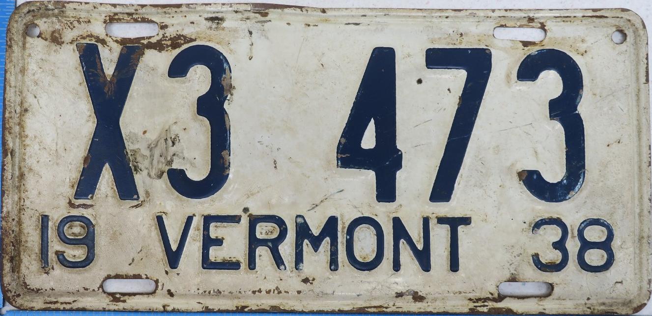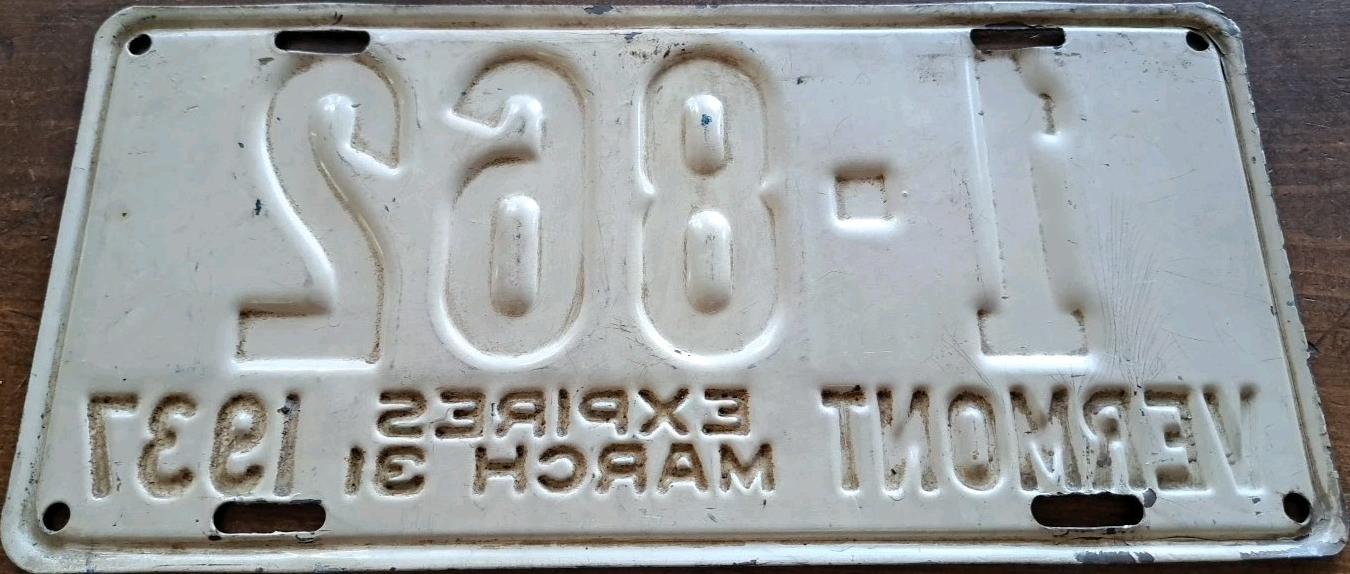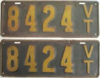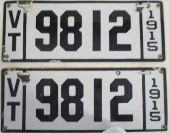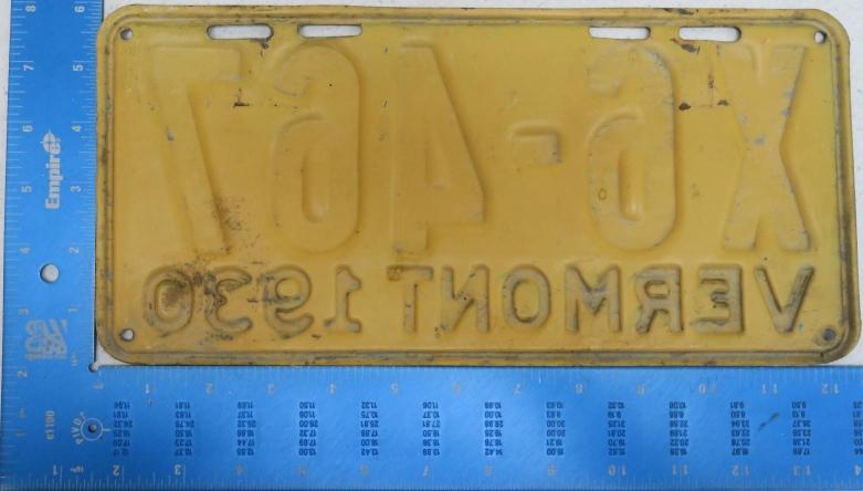 | 1935, у большинства знаков VERMONT с круглой O, но на некоторых она угловатая (см. X5-788), старший известный номер, легковые - 101 ... 72-232, грузовики - X9-546, ремонтники - RP-636, специальные - 194, прицепы - T-1063, мотоциклы - 498. Действие знаков 1935 года продлено до 31 III 1936. легковые - 179, 1-860, 39-892, 42-083, 59-496, обратная сторона. грузовики - X5-788, обратная сторона. образец знака для отделений дорожной полиции - 00-000, обратная сторона. мотоциклы - 402, 489, обратная сторона. |