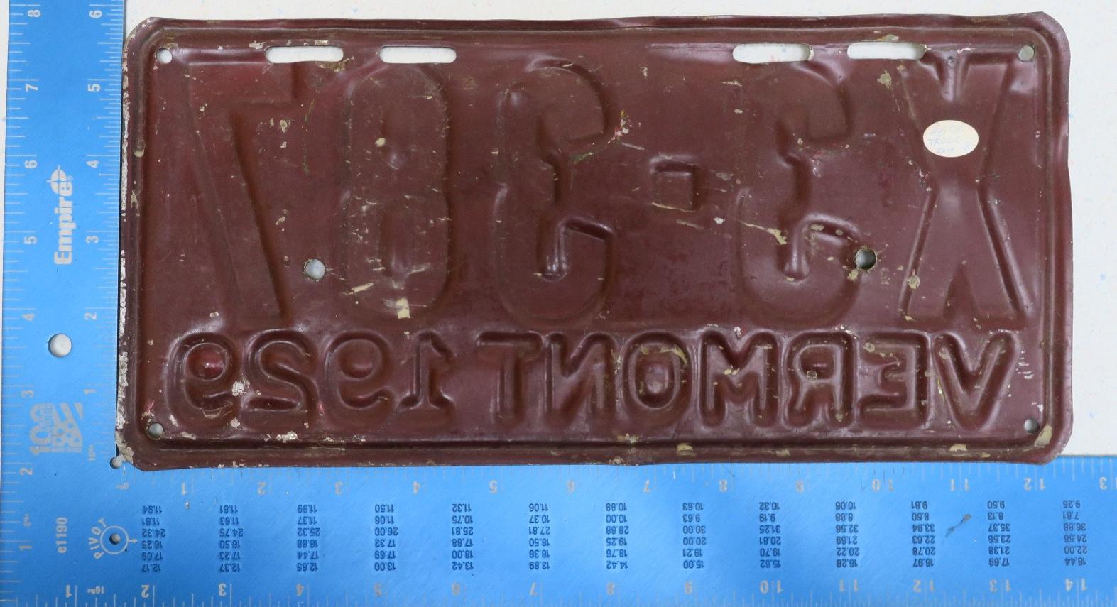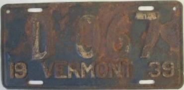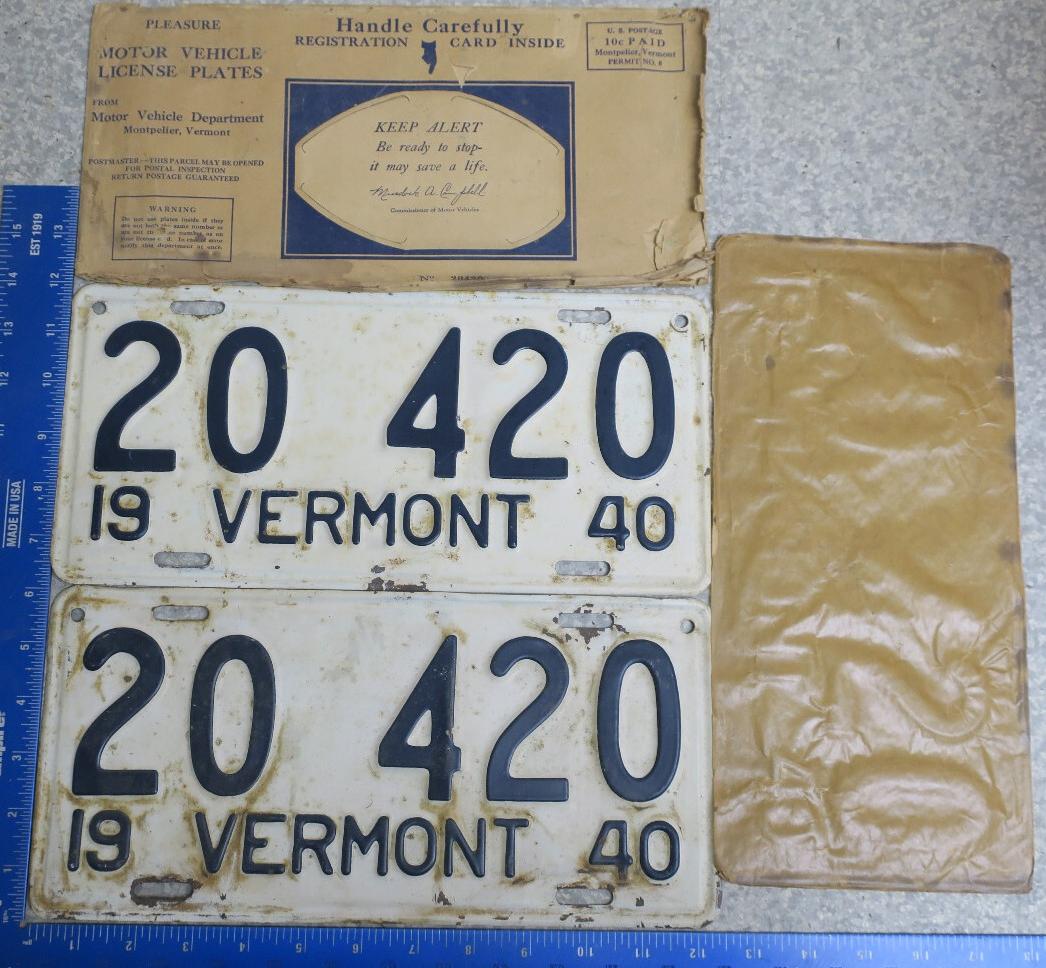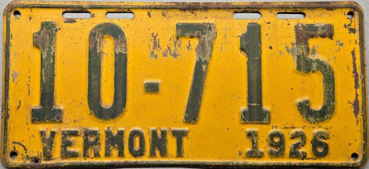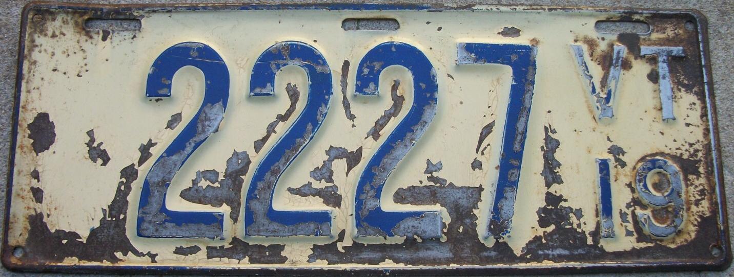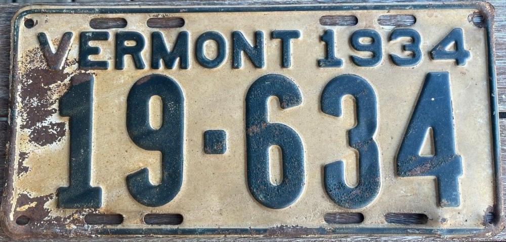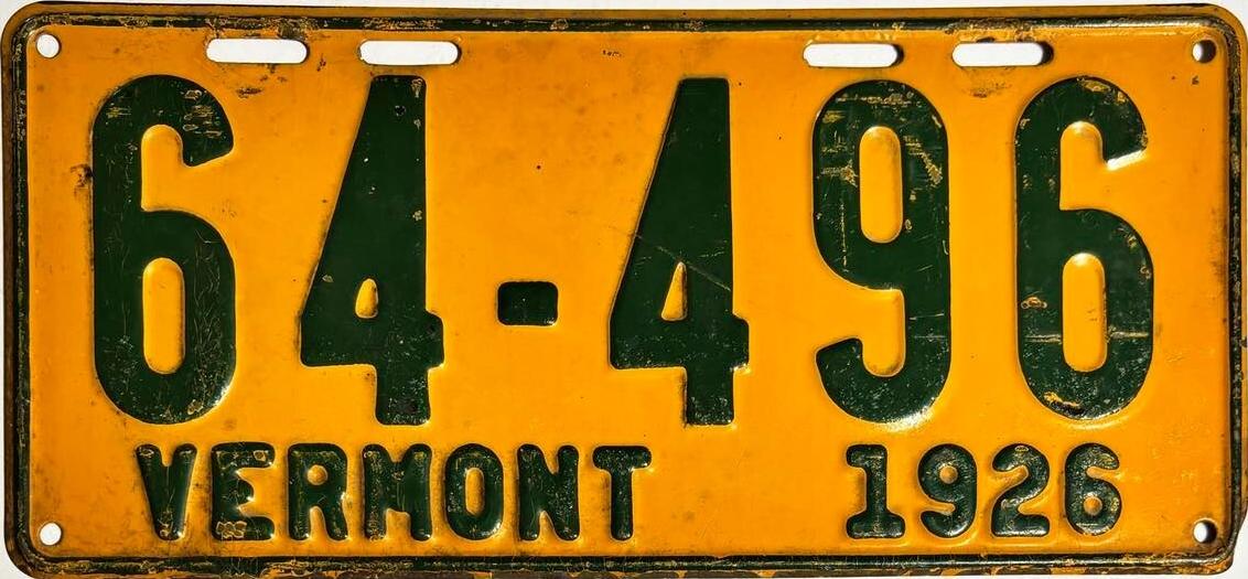 | 1935, у большинства знаков VERMONT с круглой O, но на некоторых она угловатая (см. X5-788), старший известный номер, легковые - 101 ... 72-232, грузовики - X9-546, ремонтники - RP-636, специальные - 194, прицепы - T-1063, мотоциклы - 498. Действие знаков 1935 года продлено до 31 III 1936. легковые - 179, 1-860, 39-892, 42-083, 59-496, обратная сторона. грузовики - X5-788, обратная сторона. образец знака для отделений дорожной полиции - 00-000, обратная сторона. мотоциклы - 402, 489, обратная сторона. |