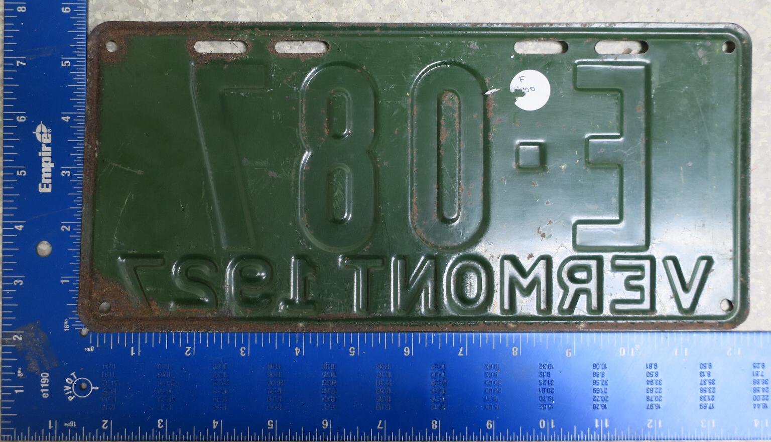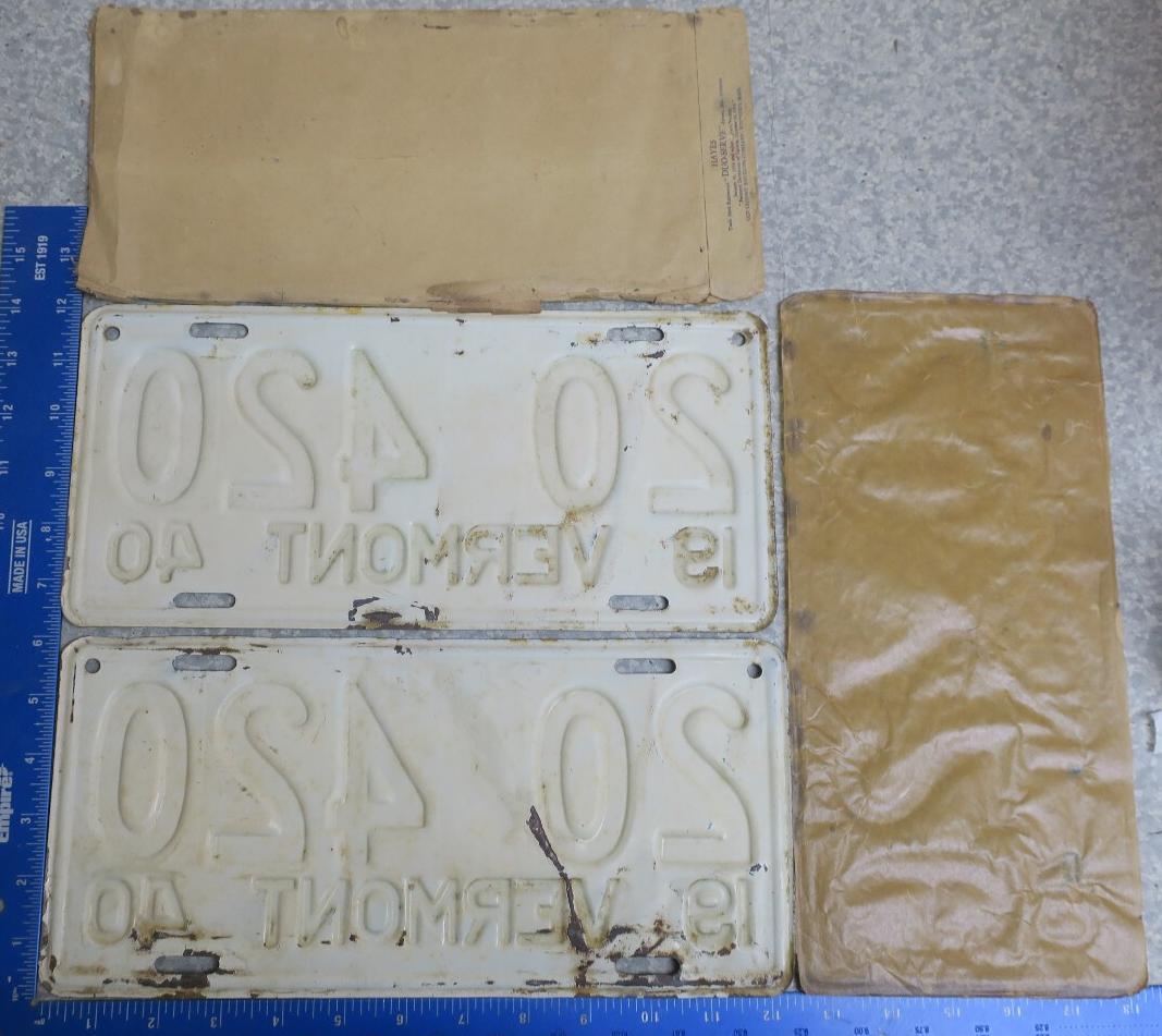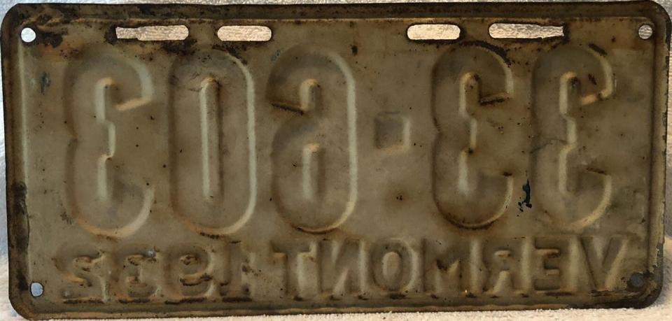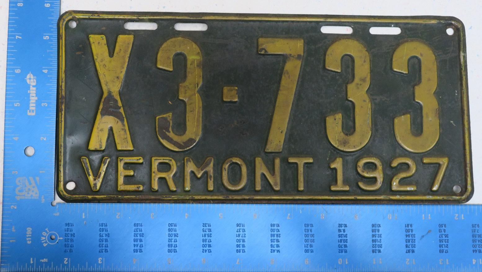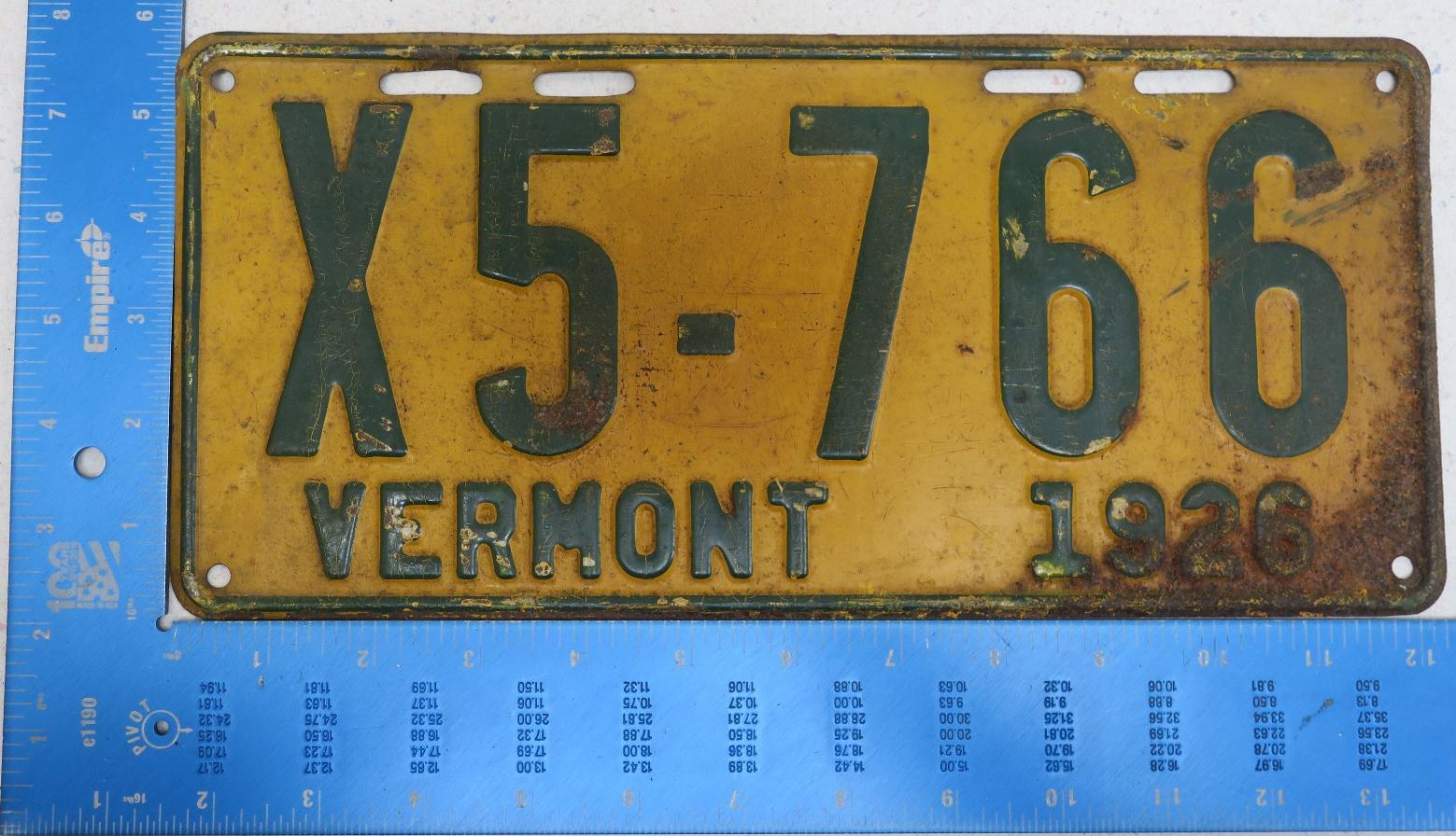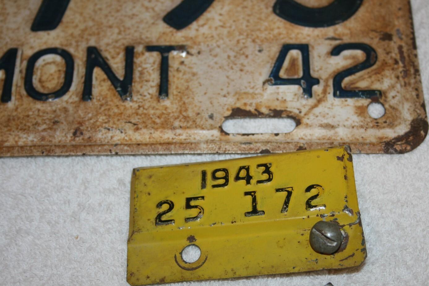| 1935, у большинства знаков VERMONT с круглой O, но на некоторых она угловатая (см. X5-788), старший известный номер, легковые - 101 ... 72-232, грузовики - X9-546, ремонтники - RP-636, специальные - 194, прицепы - T-1063, мотоциклы - 498. Действие знаков 1935 года продлено до 31 III 1936. легковые - 179, 1-860, 39-892, 42-083, 59-496, обратная сторона. грузовики - X5-788, обратная сторона. образец знака для отделений дорожной полиции - 00-000, обратная сторона. мотоциклы - 402, 489, обратная сторона. |