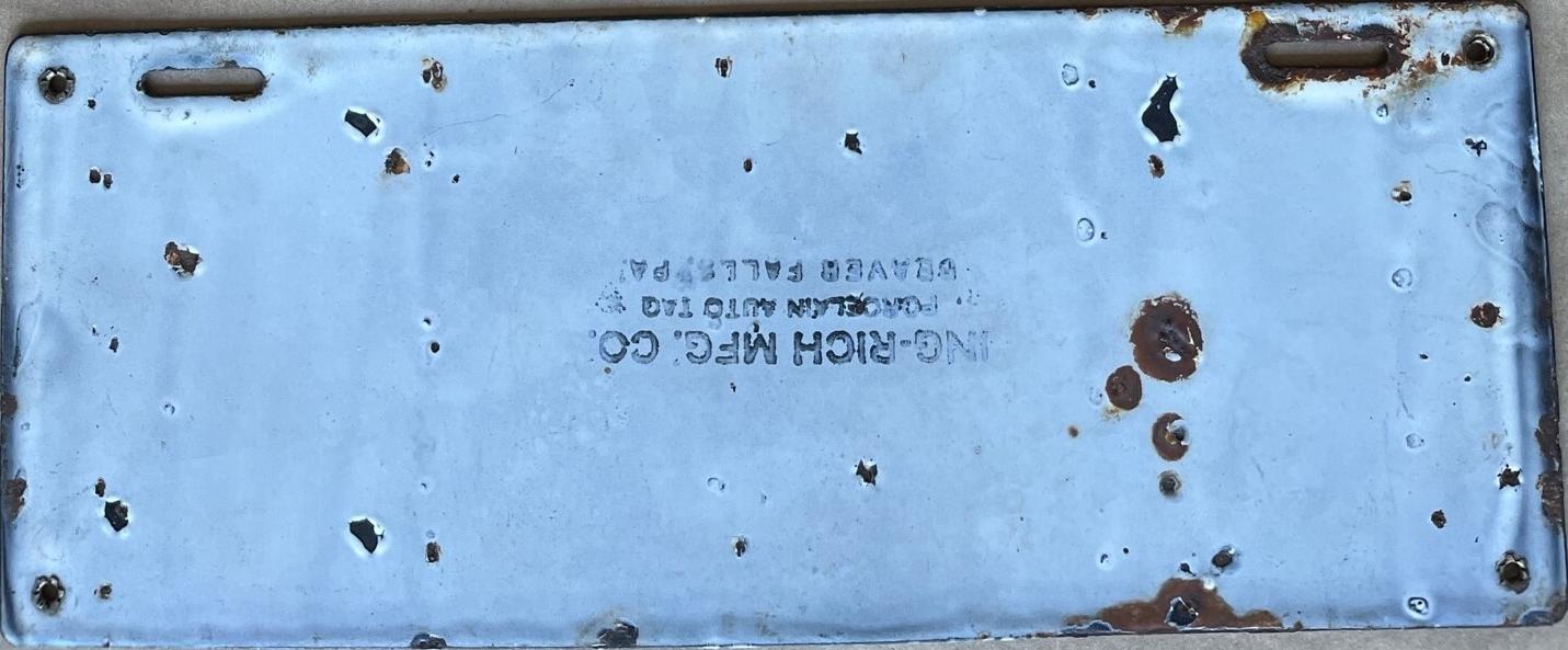 | 1941, старший известный номер, легковые - 86 665, грузовики - X9 083, прицепы - T 1802, мотоциклы - 354. легковые - 364, 2 118, 5 789, 22 435, 70 633, обратная сторона. дилеры, знаки одного и того же дилера - A 0171, G 0171, K 0171, обратная сторона. образец знака для отделений дорожной полиции - 00 000, обратная сторона. прицепы - T 601. мотоциклы - 85, обратная сторона. украшение на номер в честь 150-летия штата. |