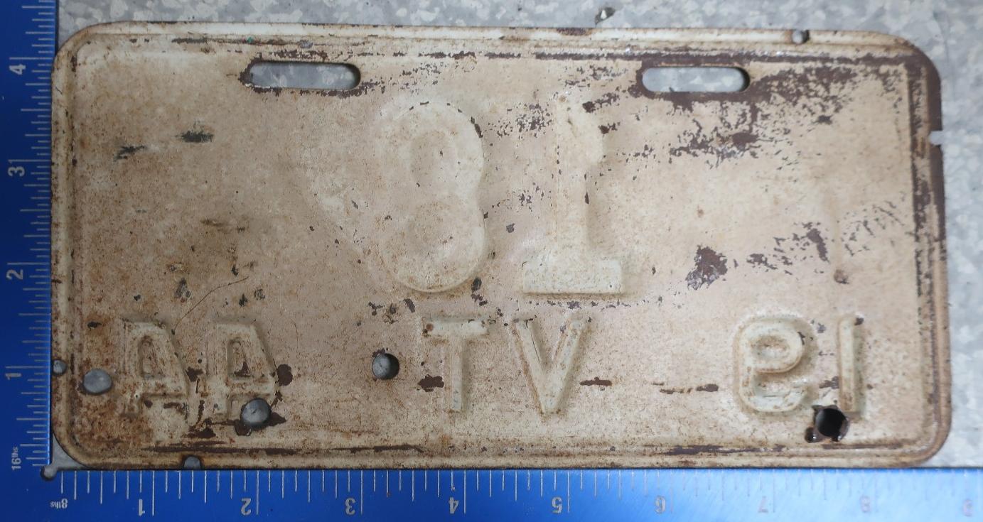 | 1944, старший известный номер, легковые - 73826, грузовики - X6000, прицепы - T 2118, мотоциклы - 250. легковые - 115, 39599, 40118, 62072, 65470, обратная сторона. грузовики - X 176. мотоциклы - 18, обратная сторона. |