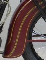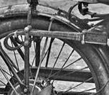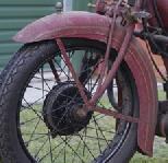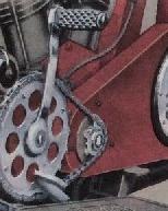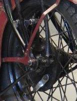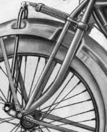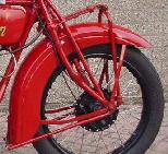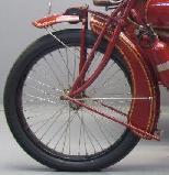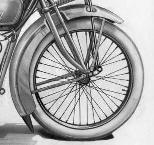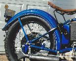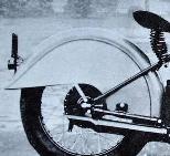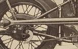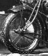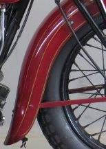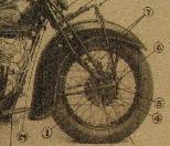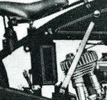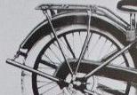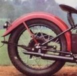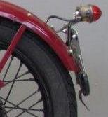 ![]() flat metal (this picture is 1922) | ![]() | longer clutch operating lever on the clutch housing, new clutch cover, heavier low tubes of frame, cross bar on the upper rear fork beneath the saddle | ||