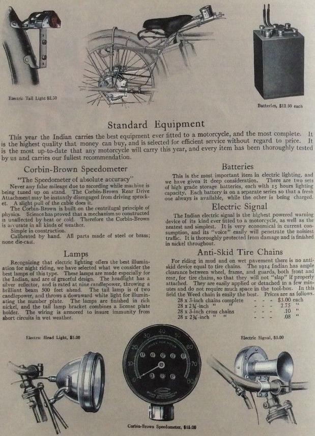 | 1934 Model 334B Chief, battery ignition, 320$ Model 334M Chief, magneto ignition, 330$ Standard Sidecar, ?$ Sport Sidecar, ?$ |