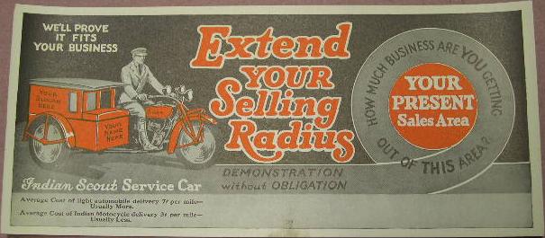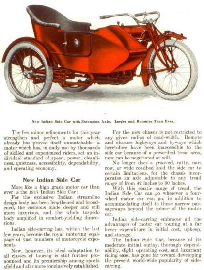 | 1922 Model H, Chief, magneto ignition, $435 Model SH, Princess Sidecar, $115 |