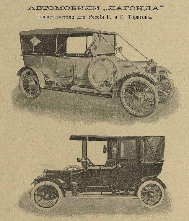1910-1911 - автомобили "русского" периода фирмы, когда почти все Лагонды шли на русский рынок. Все русские фотографии и реклама ниже относятся к этому периоду. Лагонда 30 hp, 1909-1911-?, рядный 6-цил. IOE - ? куб. см - 80 л.с.. Лагонда 50 hp, 1909-1911-?, рядный 6-цил. IOE - ? куб. см - ? л.с.. Лагонда 16-20 hp, 1909-1911-?, рядный 4-цил. IOE - ? куб. см - 58 л.с.. торпедо - 117кБ, 1913, 221кБ - это ложь, ни золотой медали, ни чугунной Лагонда не завоевала, она была снята с пробега за аварию с деревом между Гомелем и Киевом, но продолжила путь вне конкурса. эти торпедо и ландолэ предположительно тоже 16-20 hp - 116кБ, 368кБ, 97кБ, 105кБ. думаю, что и это тоже 16-20 hp - 273кБ. Лагонда 12-18 hp, 1910-1911-?, рядный 4-цил. IOE - ? куб. см - ? л.с.. торпедо основателя Лагонды Уилбура Гунна (Wilbur Gunn) в пробеге 1910 года Петербург - Киев - Москва - Петербург: Петербург, 222кБ, Царское Село, 148кБ, Москва, Манеж, на переднем плане - Бенц, 186кБ. Лагонда 16-18 hp, 1909. Лагонда 14-16 hp, 1908. Лагонда 10-12 hp, 1908. |