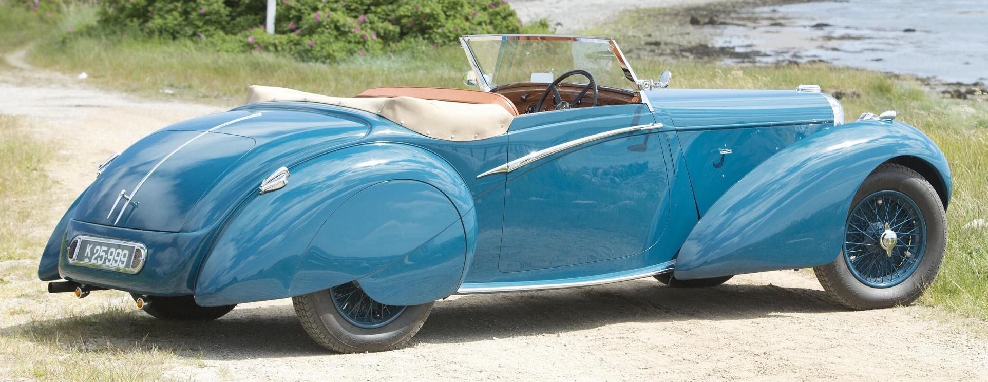 Лагонда 30hp LG6, 1937 - 1940, "Sanction 4" рядный 6-цил. OHV, 2 карбюратора SU HV5 - 4453,0 куб. см (88,5 x 120,65 мм) - 150 л.с., 85 штук Внешнее отличие от Лагонды V12 - колёсная база короче на 3,5 дюйма. Мой глаз эту разницу не улавливает. заводской спорт салон - 1939, 97кБ, 1939, 70кБ вид сбоку туринг лимузин фирмы Баркер - 1939, 73кБ заводское открытое купе - 1938, 208кБ, 1937, 176кБ, 1938, 229кБ вид сзади, 1938, 170кБ вид сзади Лагонда 30 hp LG6 Rapide, 1939 - 1940, короткая колёсная база, без подножек заводское открытое купе - 1939, 186кБ, 1939, 51кБ, 1939, 223кБ вид сзади |