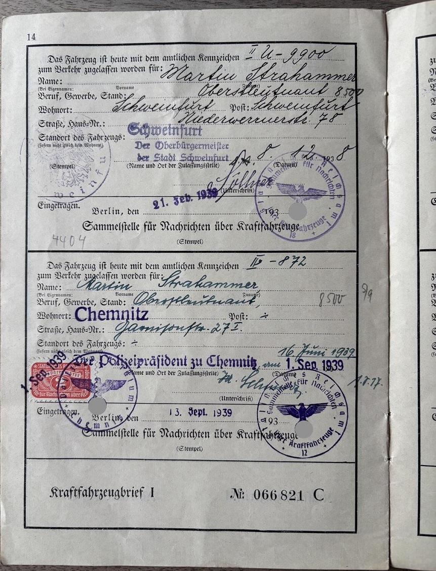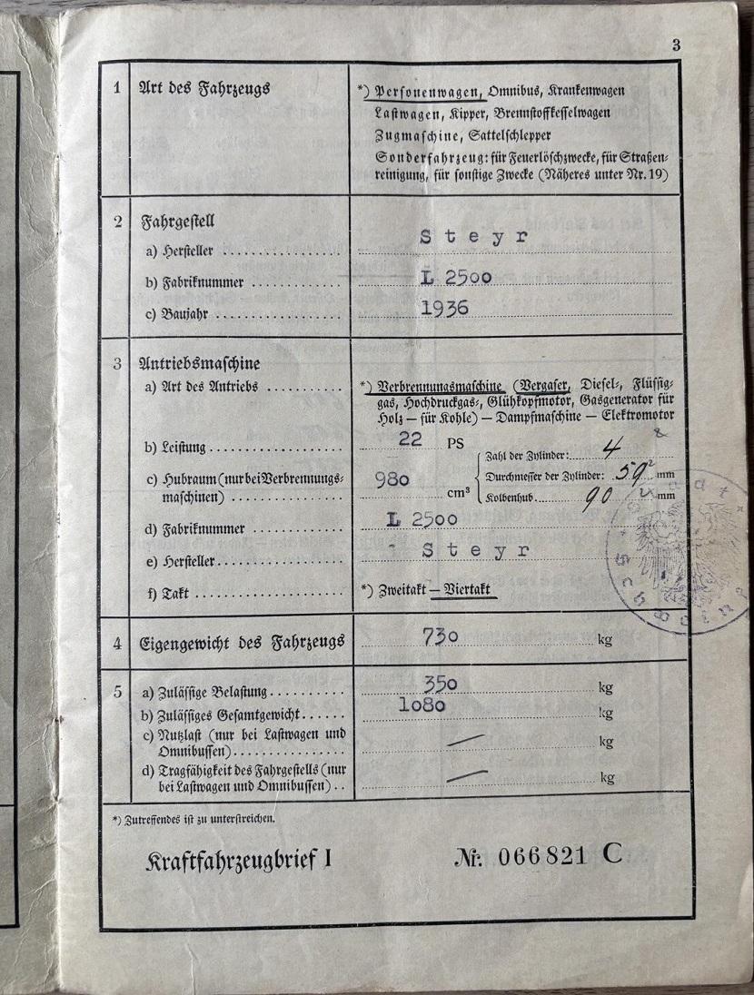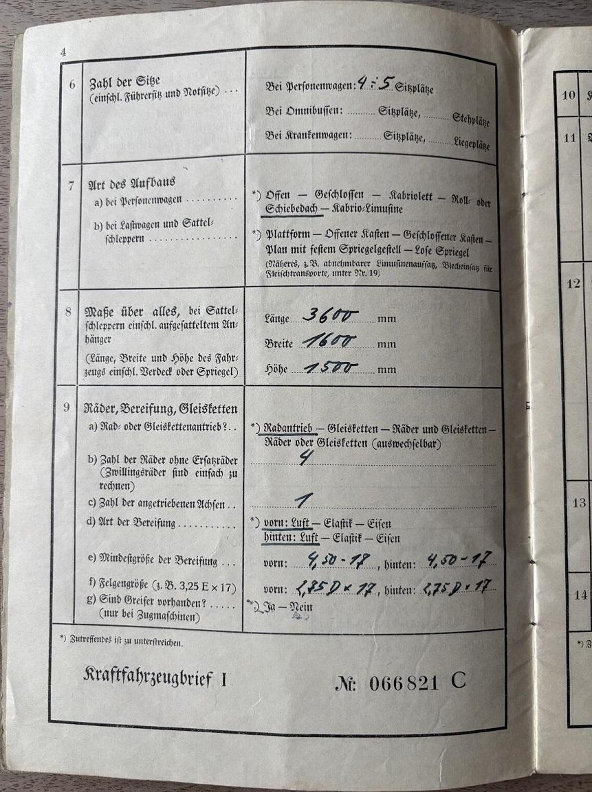 обложка техпаспорта на Штайр-50, 192кБ, техпаспорт 1939 года на Штайр-50 1936 года, смена номера с IIU-9900 (Швайнфурт) на IV-872 (Хемнитц) страница 3, 173кБ, страница 4, 177кБ, страница 5, 162кБ, |