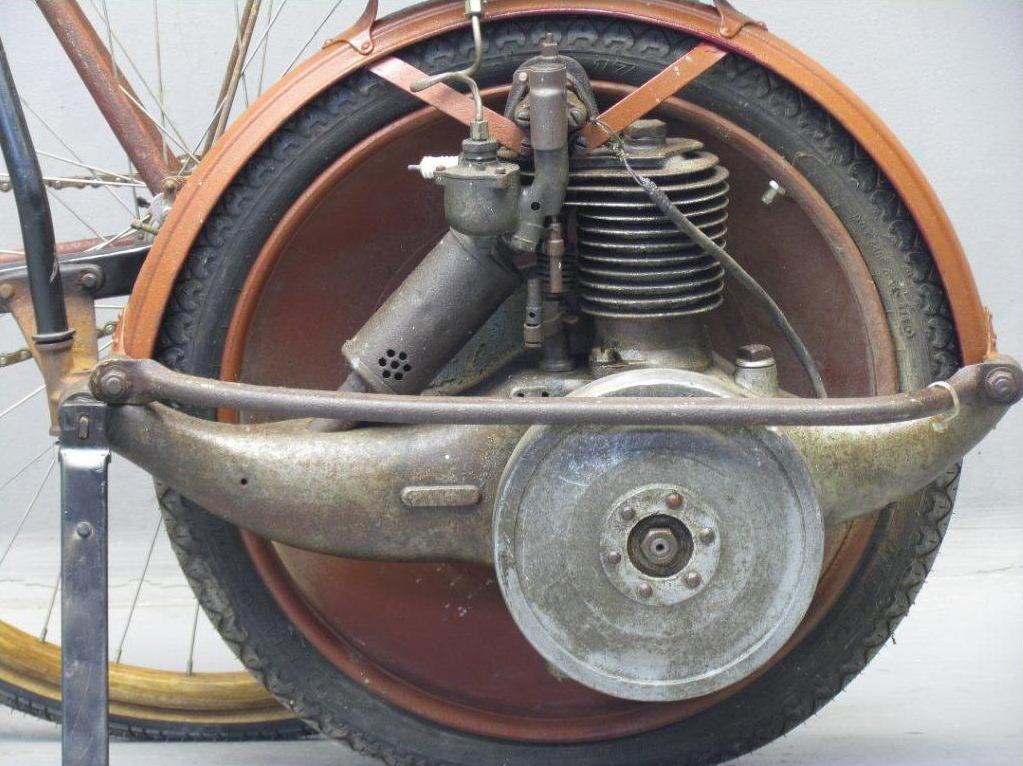 Motor wheels for bicycles, 4-stroke 1-cyl. AIV, 2hp, 12,27 cu.in. (201,1cc), bore 21/2", stroke 21/2", magneto ignition: