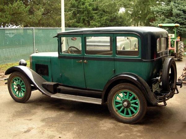 1927 year model (XII 1926 - XII 1927) Erskine Six Model 50 (21 vertical louvres, door handles under the "moulding" line, one of two 1927-1928 radiator shells), emblem, 145k photo, dashboard, 150k photo, hubcap, 49k photo 2 types of radiator shell: "lily" (USA, Canada), 282k photo, "square" (export only, Canada), 191k photo 40hp/?rpm, 146,12 cu.in. (2394,5 cc), bore 25/8", stroke 41/2", 107" wheelbase, 24893 built 5-passenger sedan, 54k photo, 56k rear view, 52k rear view, 2+2-passenger rumbleseat coupe, 159k photo, 169k rear view 5-passenger tourer, 245k photo, 191k rear view |