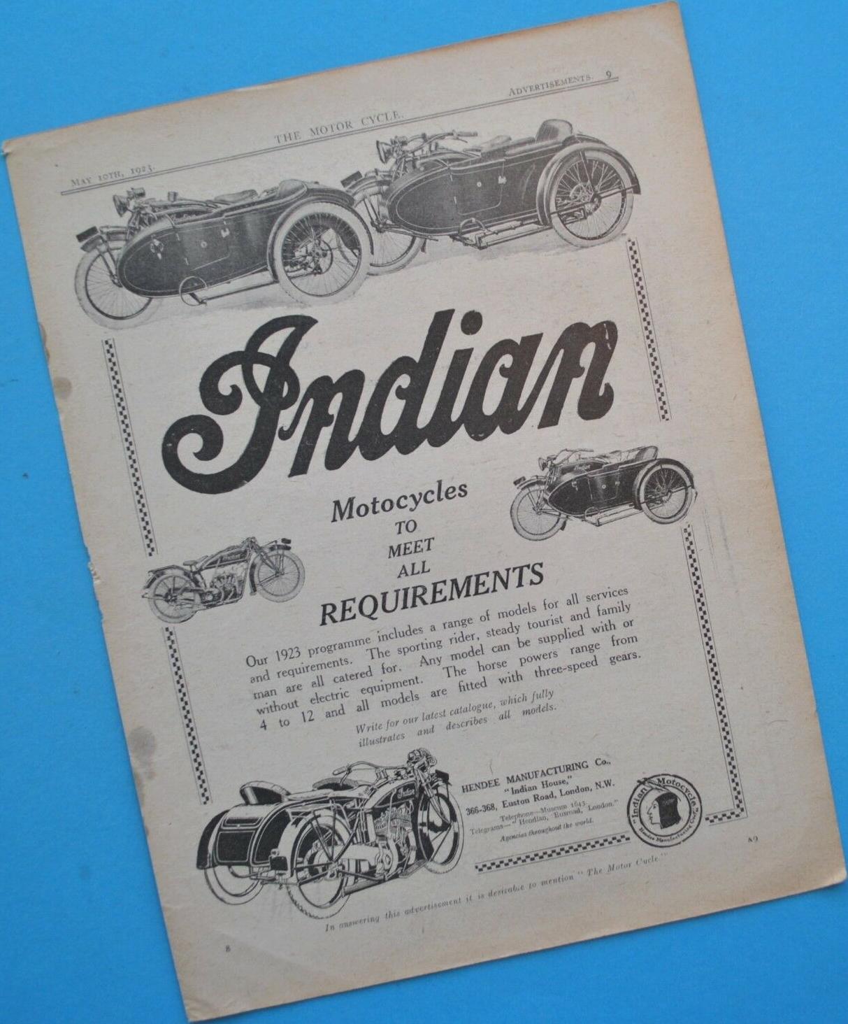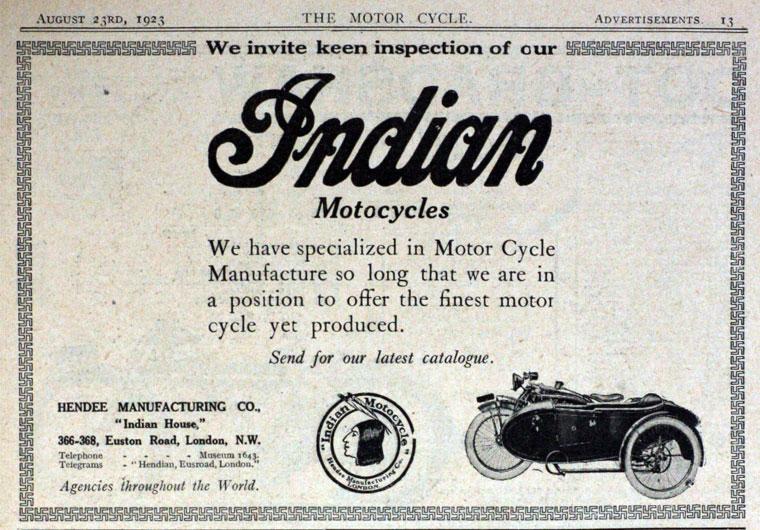 It's enigma what model is mentioned under "4 horse power" in this 1923 adv.: 189k . American Indian didn't produce light model in 1923.
