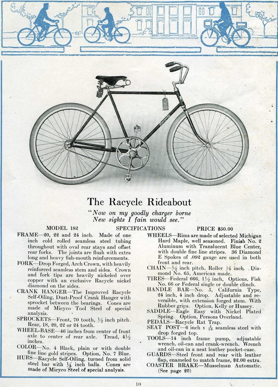 normal for Racycle, but I doubt the rest of this bike is 1909. No more data on 1909 Racycle.