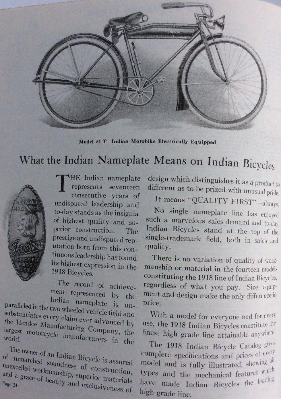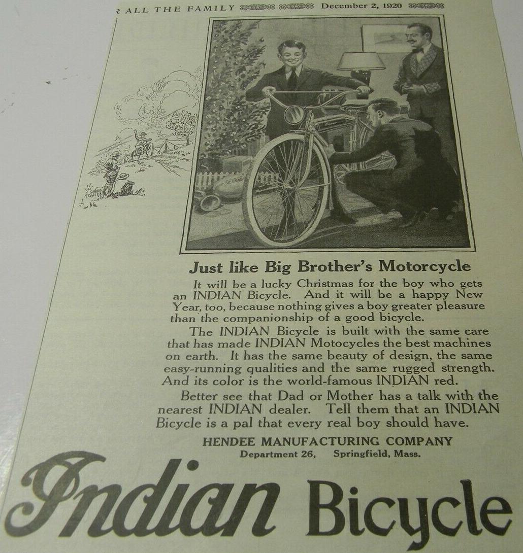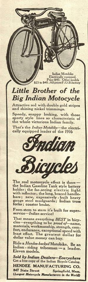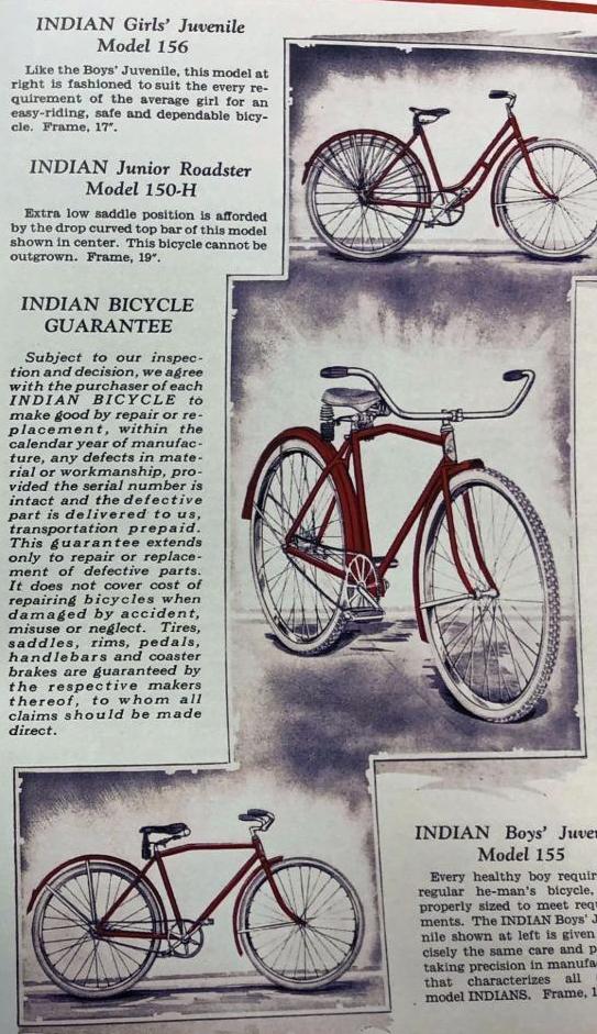 In 1936-1938 Indian Motocycle Co. didn't produce bicycles themselves but ordered them from A.G.A. (Germany) and sold under Indian trademark.