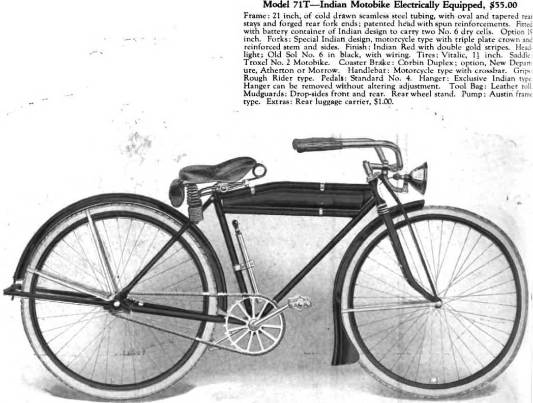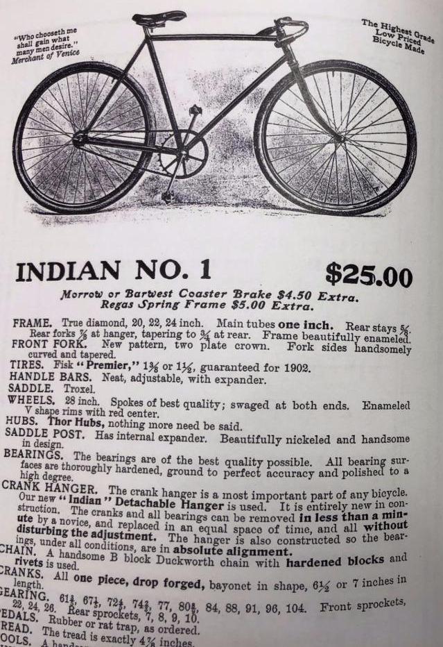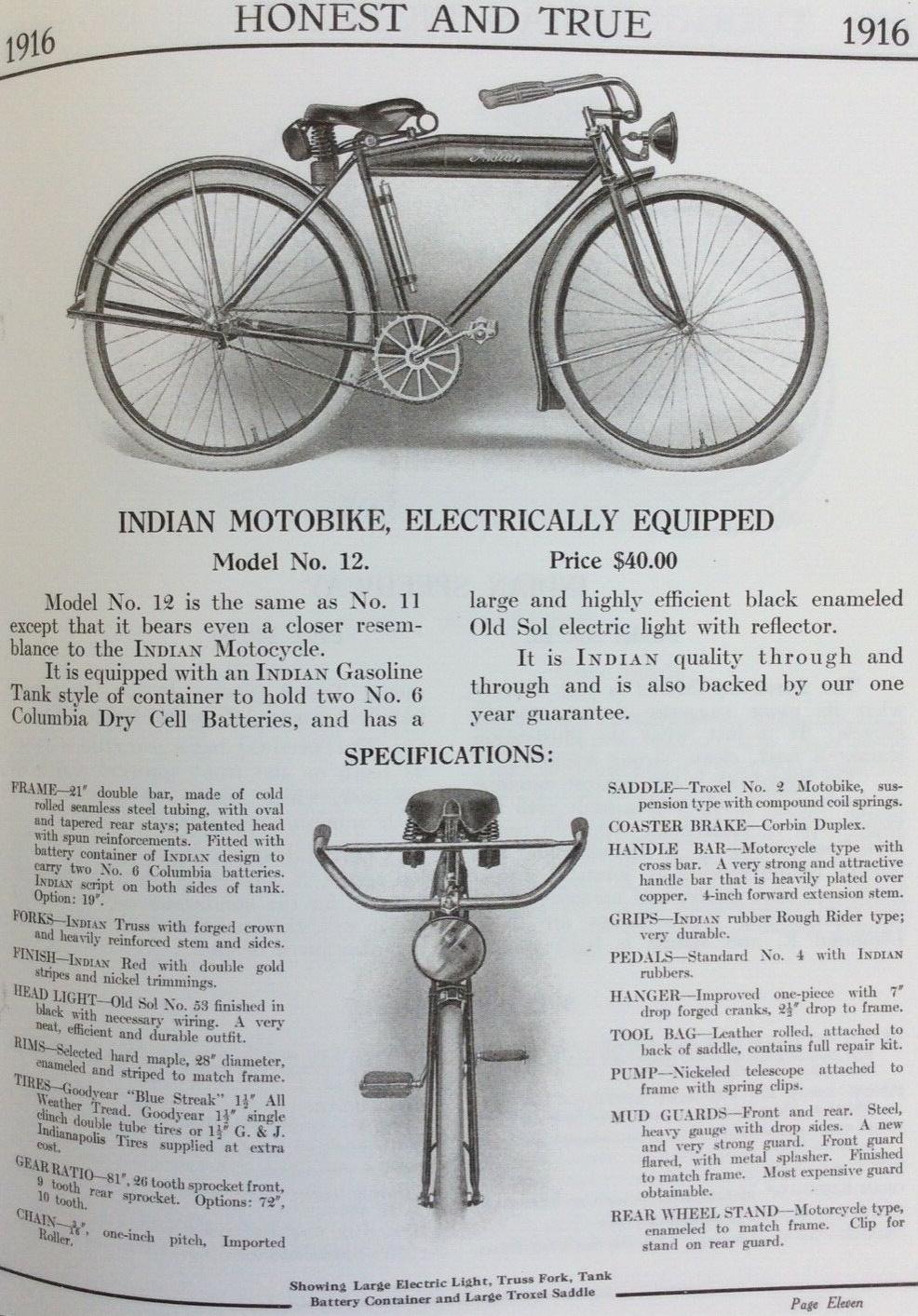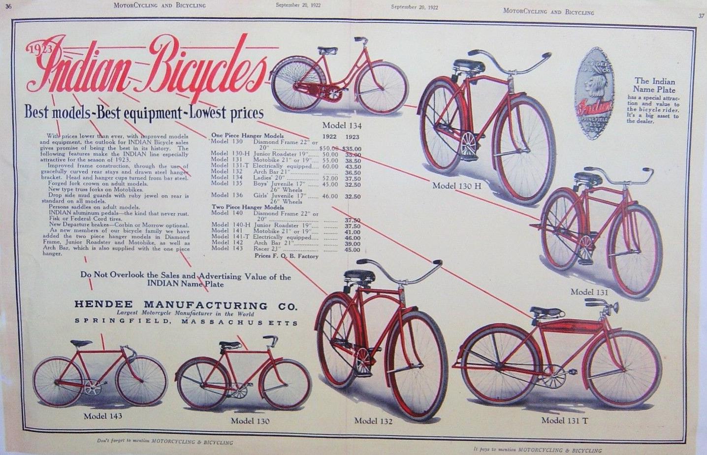 In 1936-1938 Indian Motocycle Co. didn't produce bicycles themselves but ordered them from A.G.A. (Germany) and sold under Indian trademark.