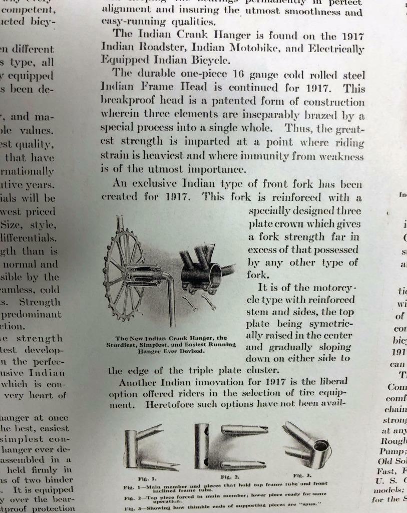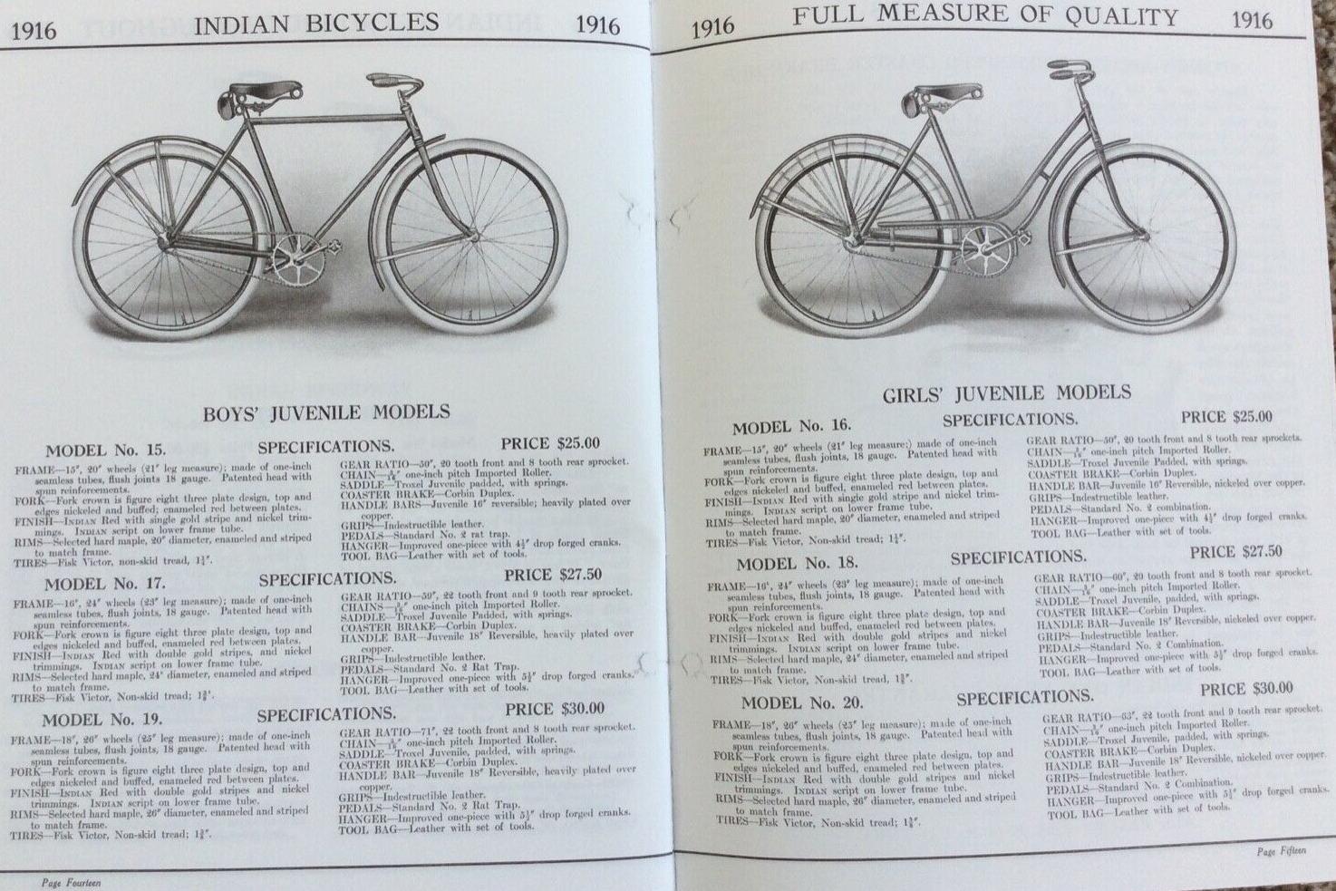 In 1916-1928 Indian didn't produce bicycles themselves but ordered them from Pope Manufacturing Co., Westfield Manufacturing Co., Davis Sewing Machine Co. and sold under Indian