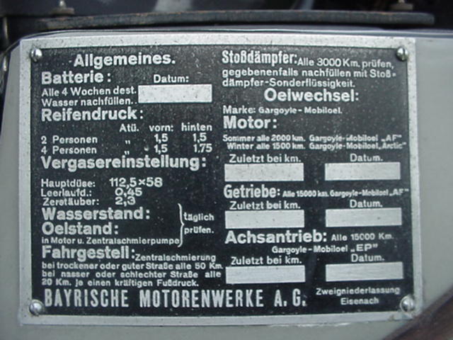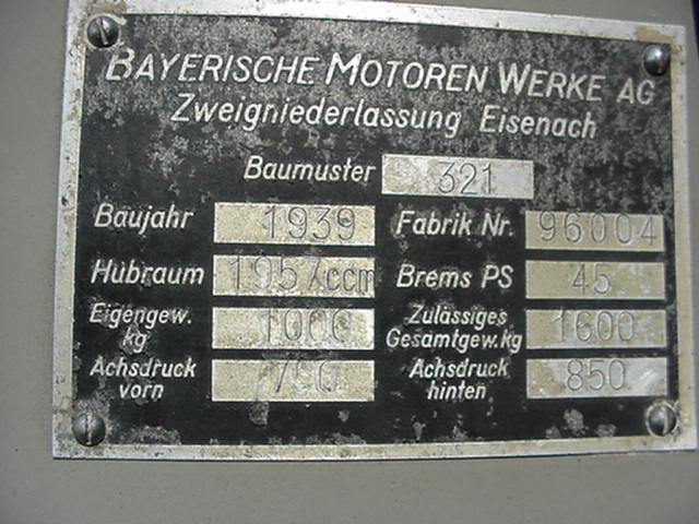 Engine: BMW 321 - 45hp/3750rpm, 6-cyl 4-stroke OHV, 1971cc