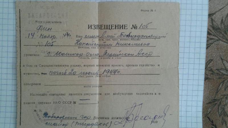 На фотографии (она раскрывается) - похоронка на Константина Николаевича.