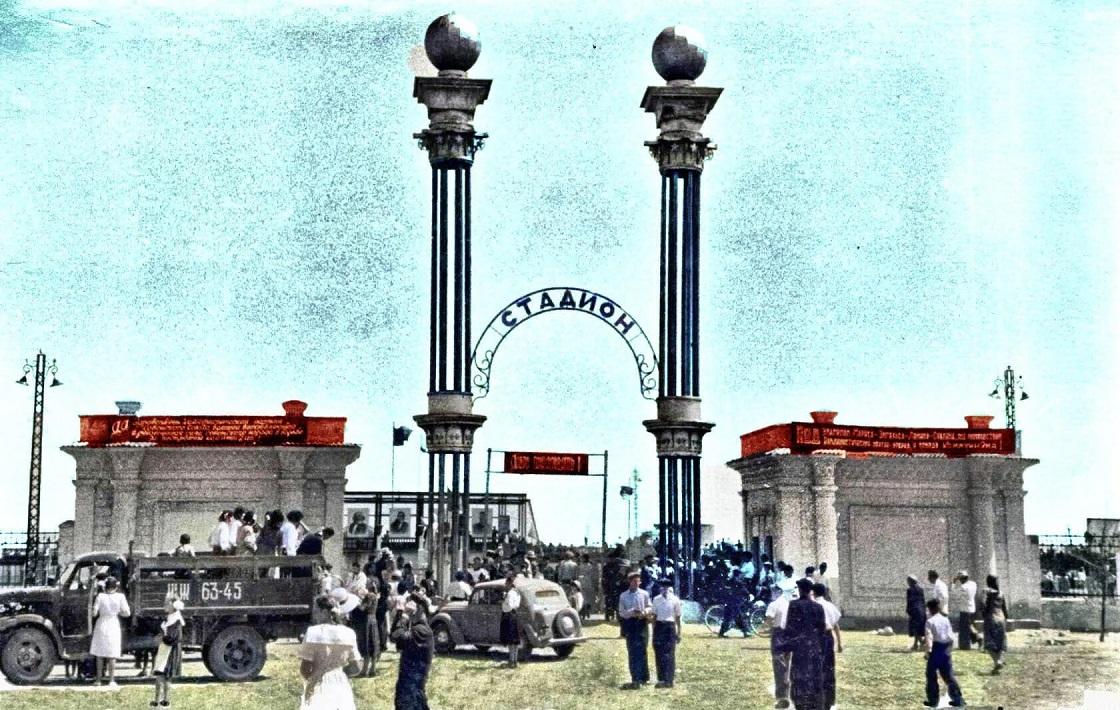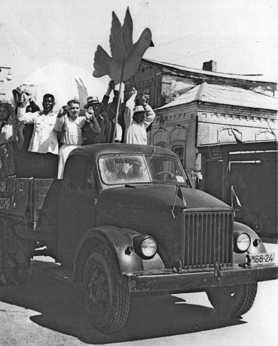 ШЖ 63-45 (ГАЗ-51 бортовой 1952-1956 годов, стадион "Нефтяник", Гурьев, Жилгородок, 1957, 159кБ).