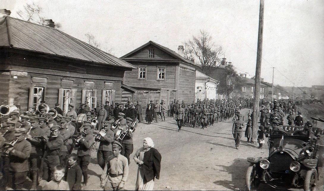 1919 (фаэтон, чехословаки идут по набережной Ангары, Иркутск, 154кБ).