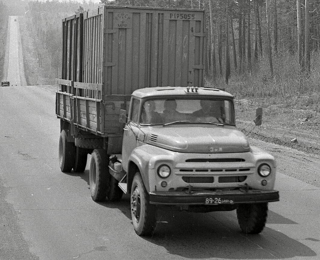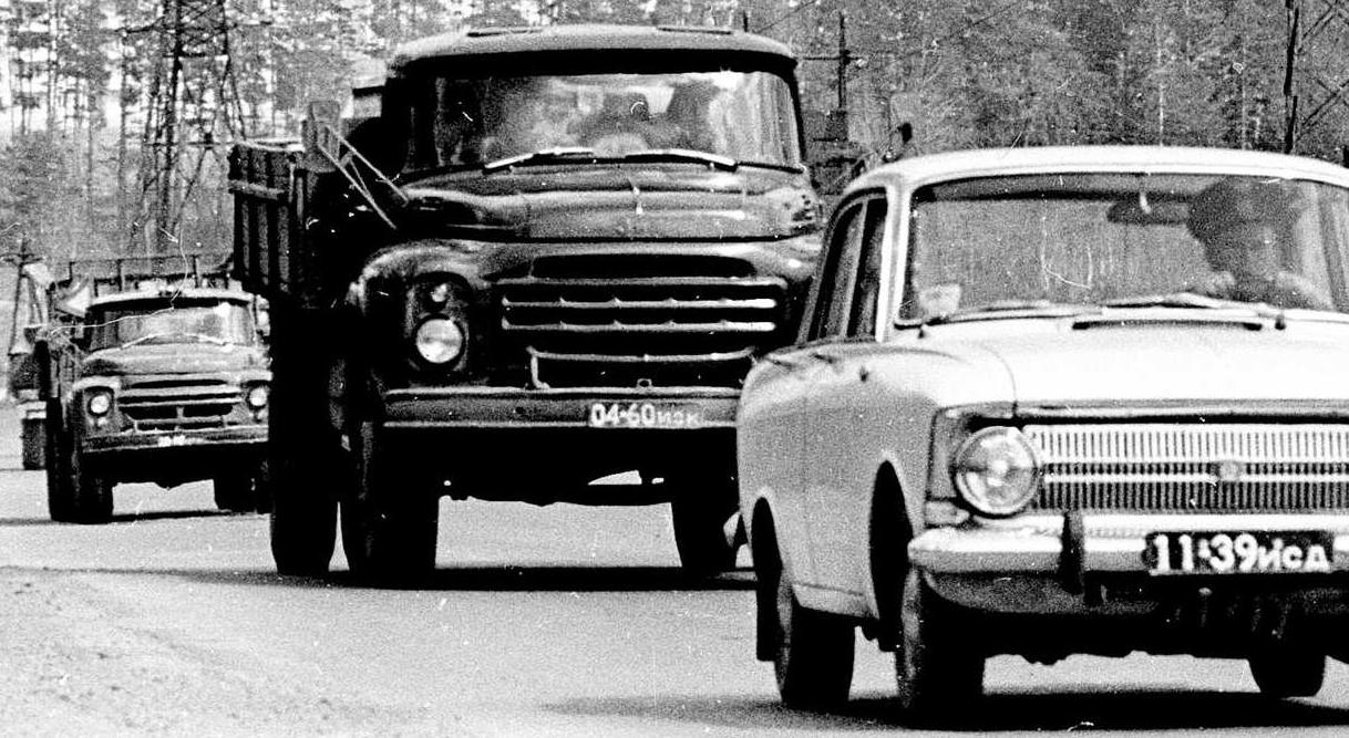ИЮ 73-44 (ЗиЛ-ММЗ-585, дорога от станции Хребтовая в Игирму, 1965, 103кБ). В 60-е годы иногда перекрашивали жёлтые номера в чёрный цвет.