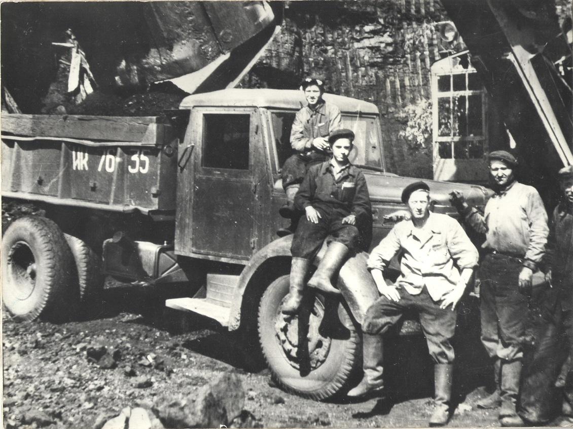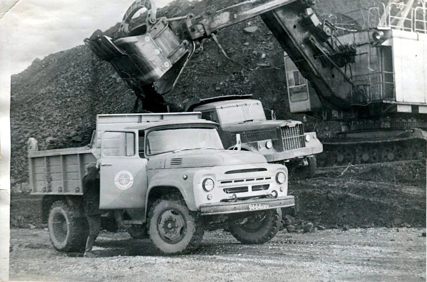 ЖЦ 64-70 и ЖЦ 64-55 (ЗиЛы-164Н с самосвальными полуприцепами Анжерской автобазы, шахта Судженская, 146кБ).