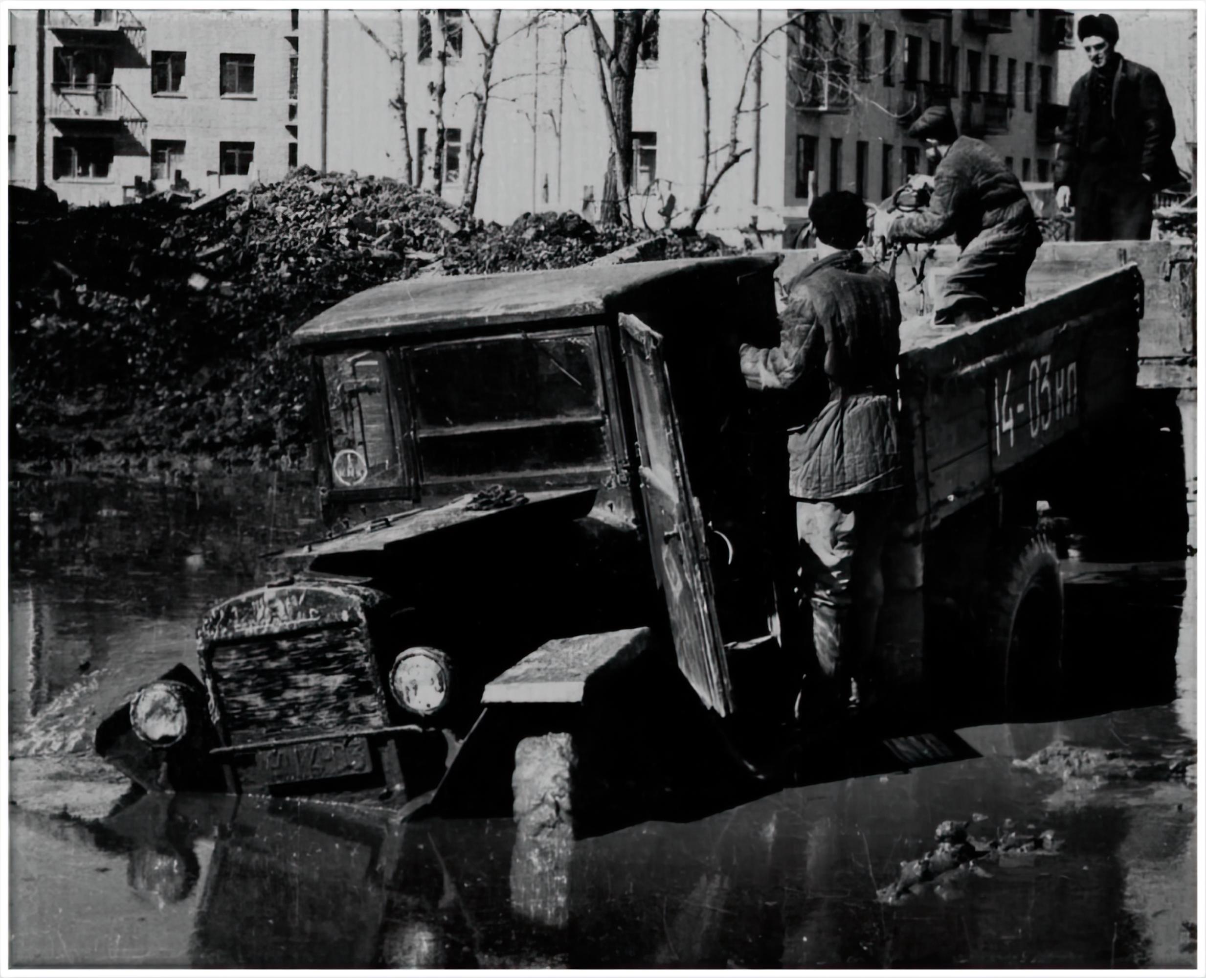 ИИ 20-59 (ЗиС-150 бортовой 1955-1956 годов, Юрга, улица Леонова, 1957, 209кБ, 105кБ).
