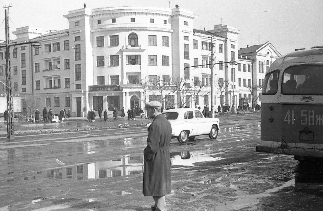 54-61 КЕВ (ГАЗ-21 "Волга", Кемерово, Советский проспект, горисполком, 1969, 100кБ).