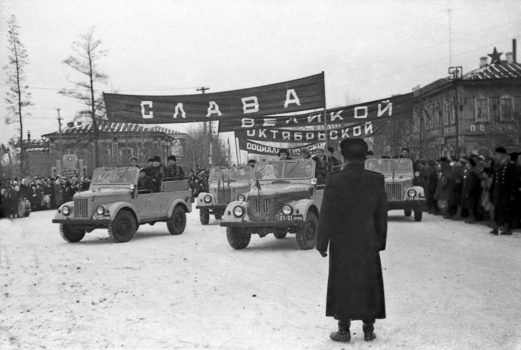 02-38 ОМГ (ГАЗ-69, визит Вальтера Ульбрихта в Омск, музылище на проспекте Карла Маркса, 1964, 193кБ).