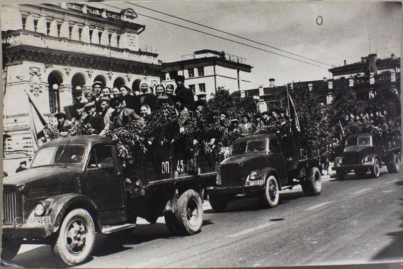 ОП 45-89 (ГАЗ-51 бортовой 1953-1955 годов привёз колхозников в театр драмы имени Горького, Горький, улица Свердлова, 1964-1965, 105кБ).